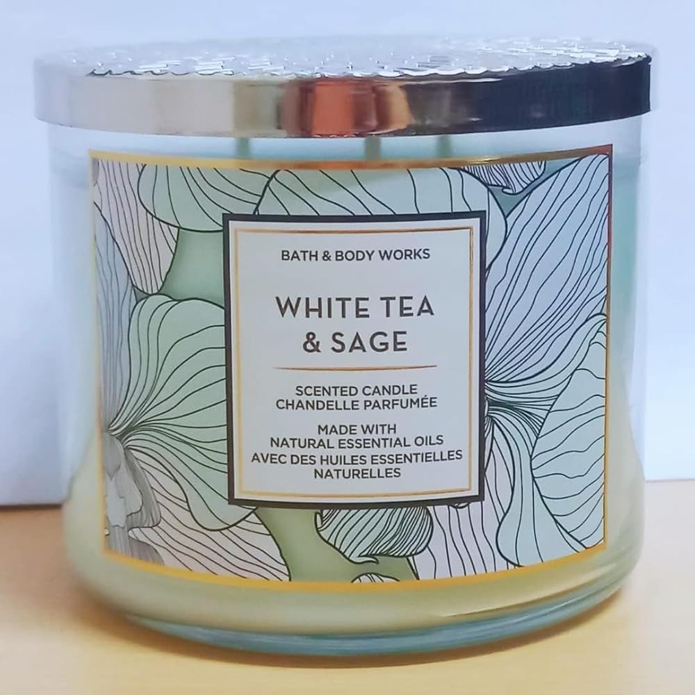 Bath and body works white tea and sage 3-wick candle, 14.5 ounce