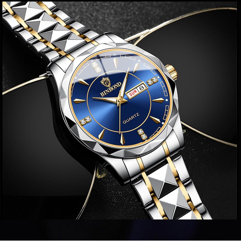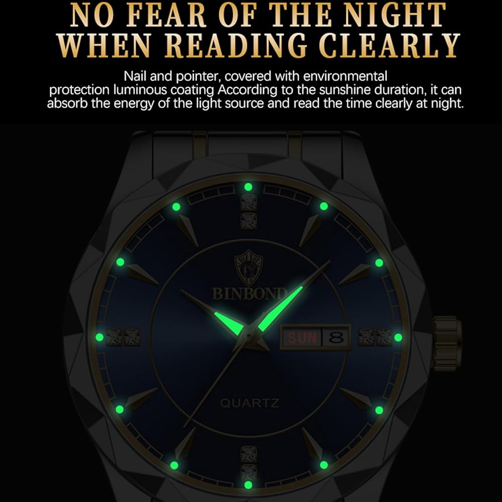 مجموعة ساعات رجالية مكونة من 4 قطع، ساعات كبيرة الحجم للرجال من الفولاذ المقاوم للصدأ مع تاريخ أسبوع مقاوم للماء وساعة يد كلاسيكية مضيئة للأعمال الماسية بالجملة