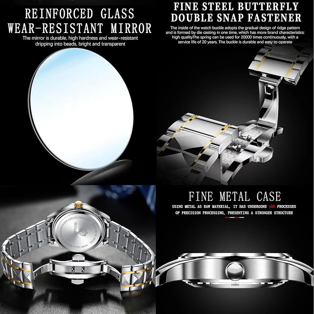 - ساعات رجالية بتصميم متعدد الوظائف: ثلاثة أقراص فرعية متعددة الوظائف تدعم ساعة التوقف وتقويم تاريخ الأسبوع، وإطار قابل للدوران، وحركة الكوارتز اليابانية والحفاظ على الوقت الدقيق.