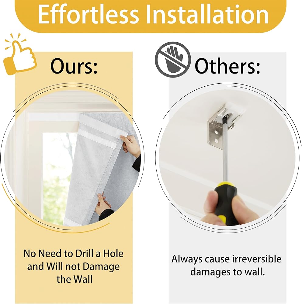 تركيب بدون مجهود: يأتي هذا الظل الروماني مزودًا بشريط سحري، مما يلغي الحاجة إلى مسامير أو ثقوب. ما عليك سوى تقشيرها ولصقها وضبطها للحصول على إعداد خالٍ من العيوب وخالي من التلف في دقائق. سهولة التثبيت تجعله خيارًا مثاليًا للمستأجرين أو أي شخص يبحث عن حل سريع ومريح لمعالجة النوافذ.