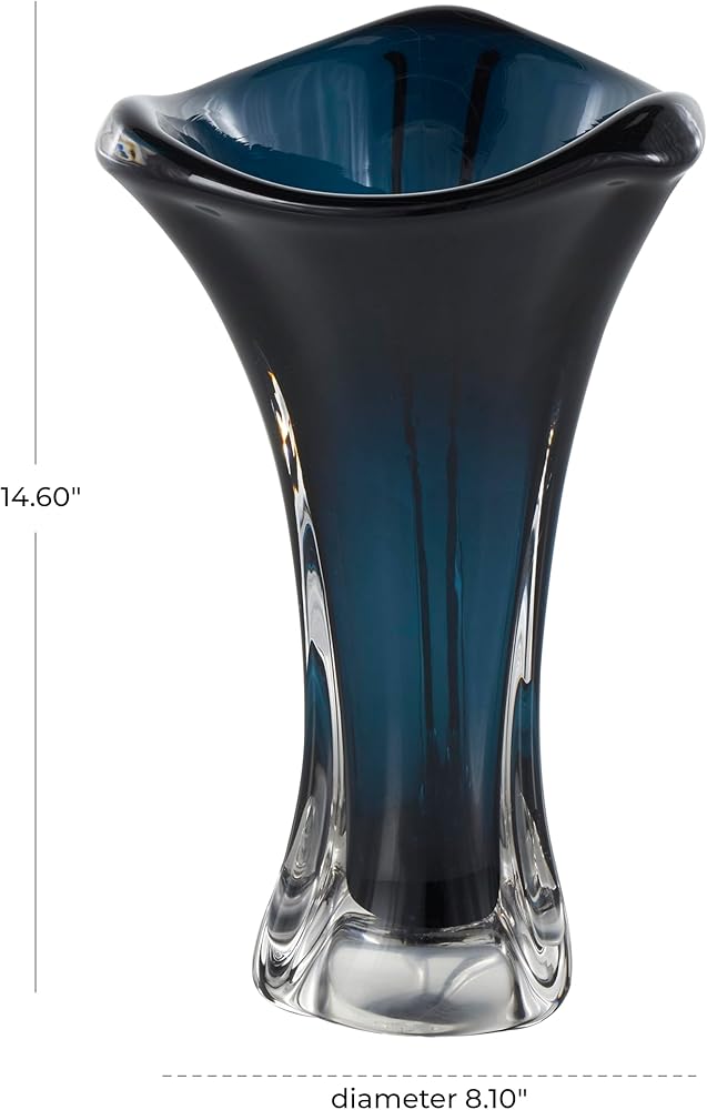 SMALL SIZE FLOWER VASE CENTERPIECE: The dark blue glass vase measures 8.3L x 8.1W x 14.6H inches, and weighs 8.935 lbs