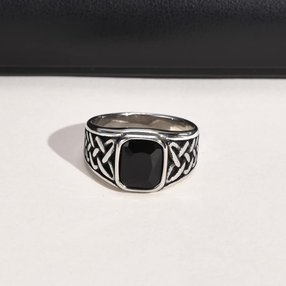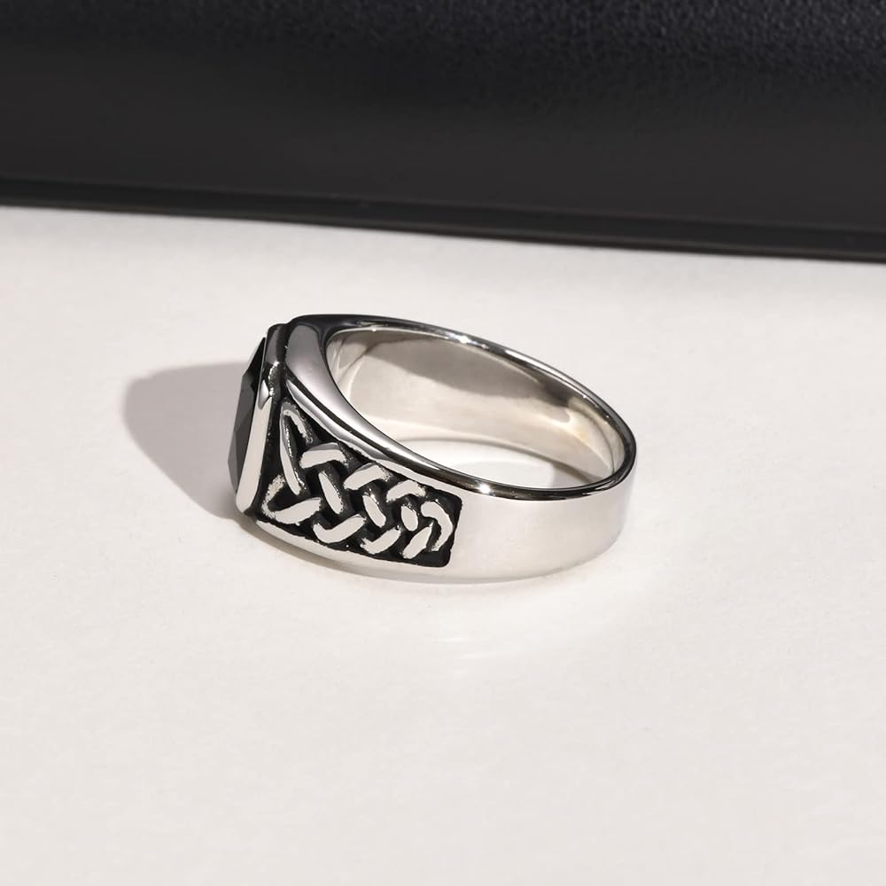 خاتم أونيكس بعقدة سلتيك للرجال - خاتم من الفولاذ المقاوم للصدأ بعقدة سلتيك أيرلندية بحلقة من حجر العقيق الأسود للرجال، خاتم مجوهرات له، هدية لزوج الأب، مقاس 9