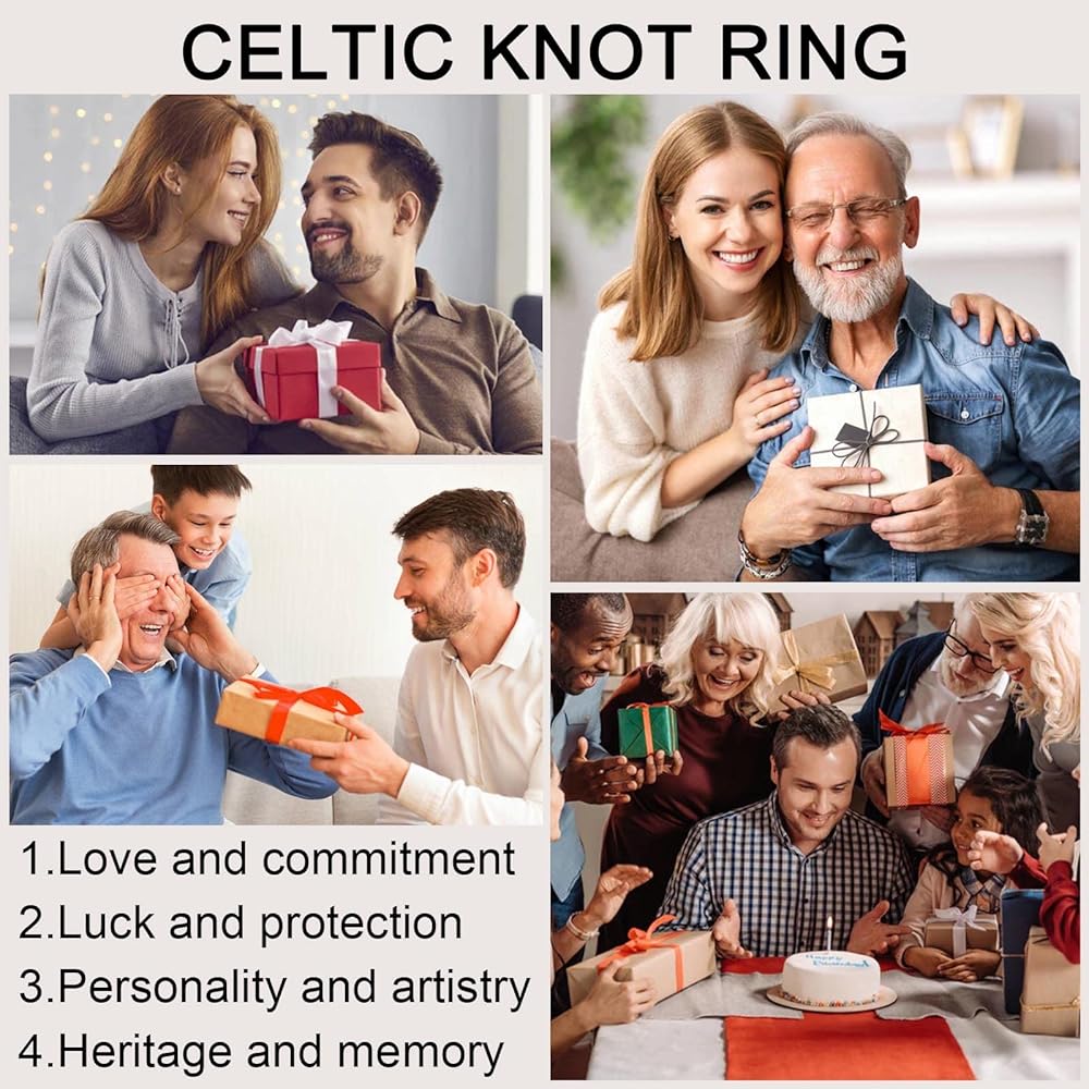 • هدية مثالية: سيكون هذا الخاتم ذو العقد السلتية الرجالي خيارًا مثاليًا لتقديمه لوالدك، أو رجل العريس، أو الصديق، أو الأخ، أو الزوج، أو الصديق المفضل، أو العائلة وما إلى ذلك، فهو هدية ذات معنى لعيد الميلاد، أو الذكرى السنوية، أو هدية الزفاف، أو الخطوبة هدية، هدية عيد الأب، هدية عيد الميلاد. مناسبة لأية مناسبة.