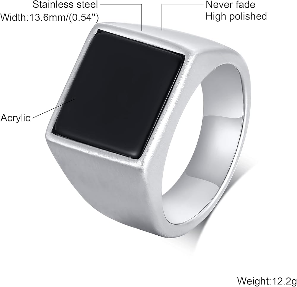 Men's Stainless Steel Signet Rings Black Acrylic Square Signet Pinky Thumb Ring for Men him Dad Husband,Waterproof,Statement Ring for Men