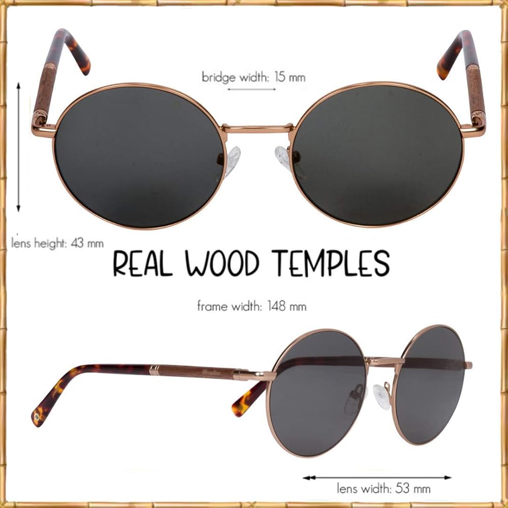 النمط: تتميز نظارتنا الشمسية ذات الإطار الذهبي القديم بأذرع من خشب الجوز الحقيقي بنسبة 100% وأذرع سلحفاة نباتية، بالإضافة إلى عدسات TAC المستقطبة الداكنة. نظارات شمسية دائرية صغيرة مصنوعة لتدوم طويلاً، مع أذرع قوية ومفصلات زنبركية مزدوجة من الفولاذ المقاوم للصدأ 316L
