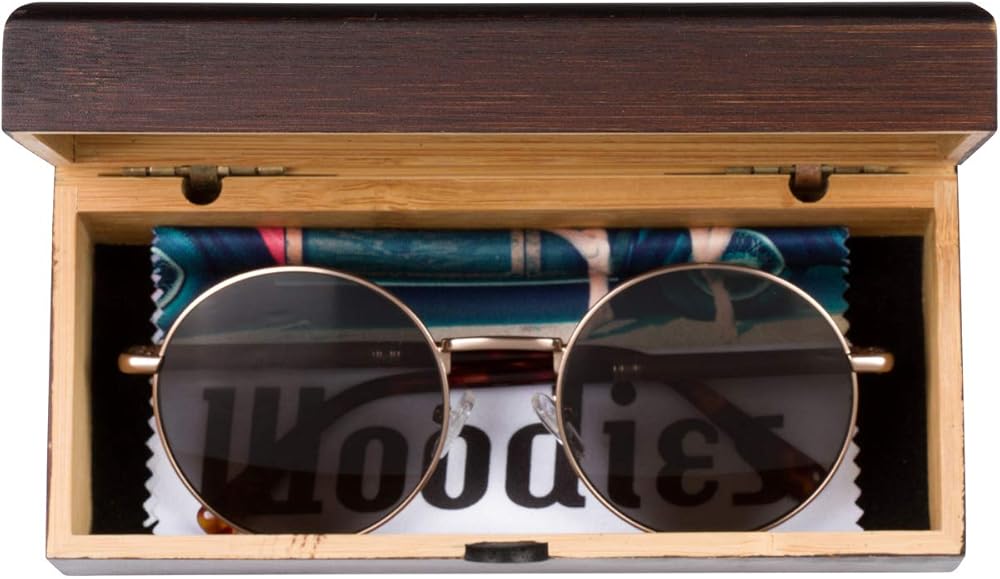 هدية شكر إضافية: تتضمن صندوق عرض هدايا خشبي مجاني، وقطعة قماش لتنظيف العدسات، وقطعة جيتار خشبية