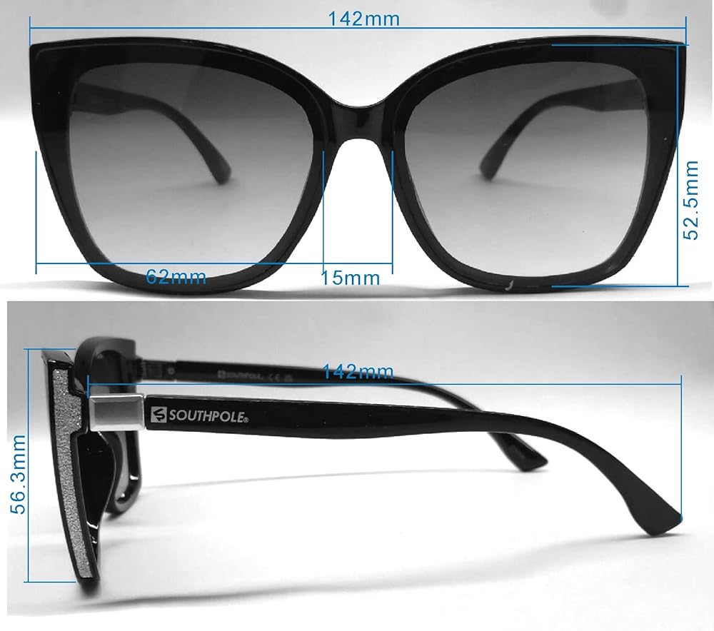 Explore Southpole Sunglasses for Women: Enjoy a new pair of Southpole women's sunglasses UV400 protection that are lightweight and comfortable to wear all day long and suitable for every season. Accessorize your wardrobe with this fashionable sparkling women's cat eye sunglasses with integrated nose pads. Cool women's gifts - pick up an extra pair to have as a backup.