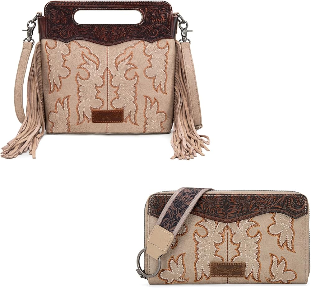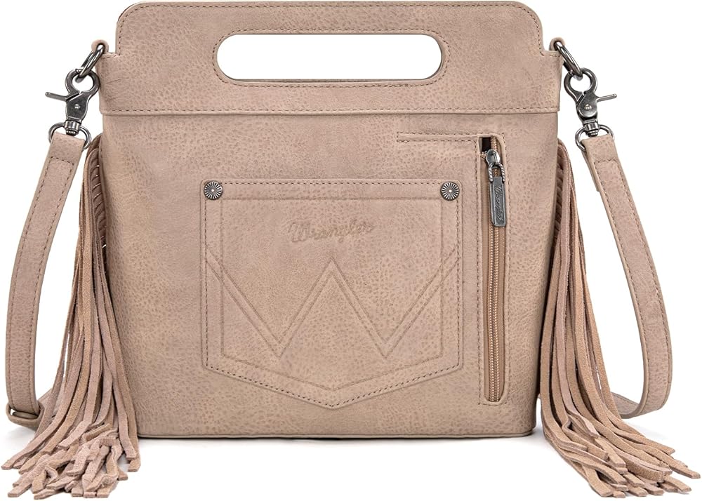 Wrangler Western Fringe Top Handle Crossbody Bag with Wallet for Women
