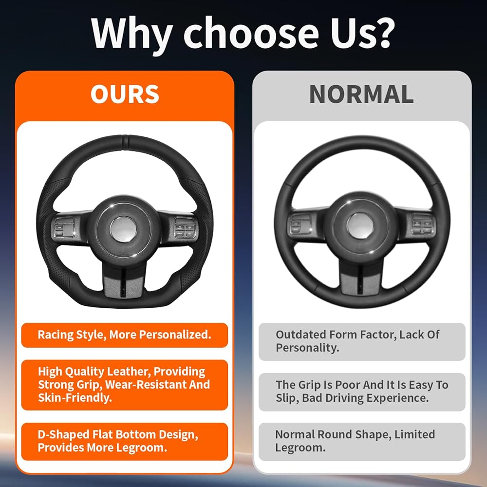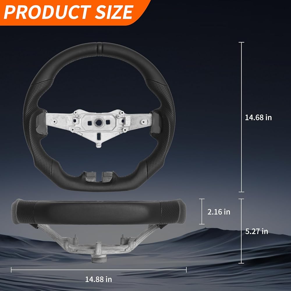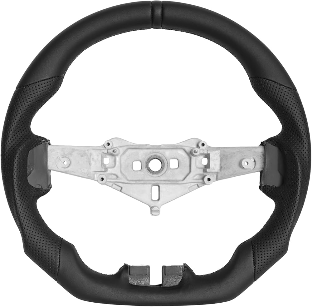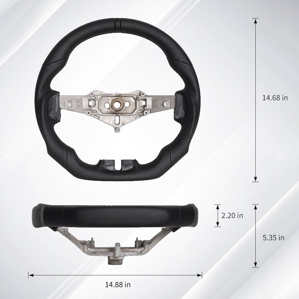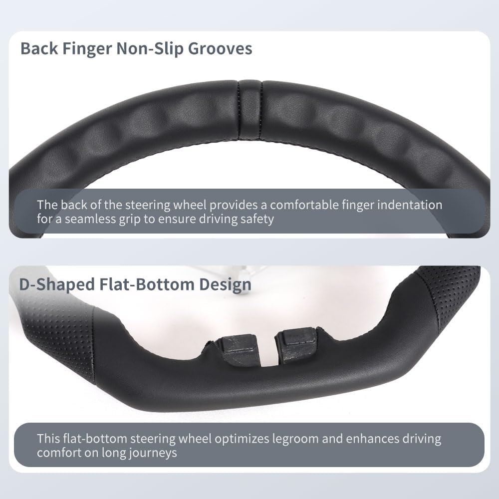 عجلة قيادة جلدية بالكامل: عجلة القيادة هذه مصنوعة من جلد عالي الجودة، ويمكن استخدامها لفترة طويلة دون تقشير. يعمل التصميم السفلي على شكل D على تحسين مساحة الأرجل وتعزيز راحة القيادة في الرحلات الطويلة