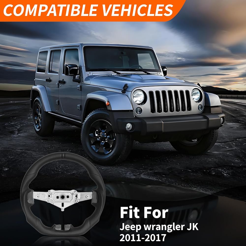 الإعداد: عجلة القيادة هذه مناسبة لسيارة Jeep wrangler JK 2011-2017، يرجى التحقق من عجلة قيادة السيارة الأصلية قبل الشراء لضمان التثبيت السلس