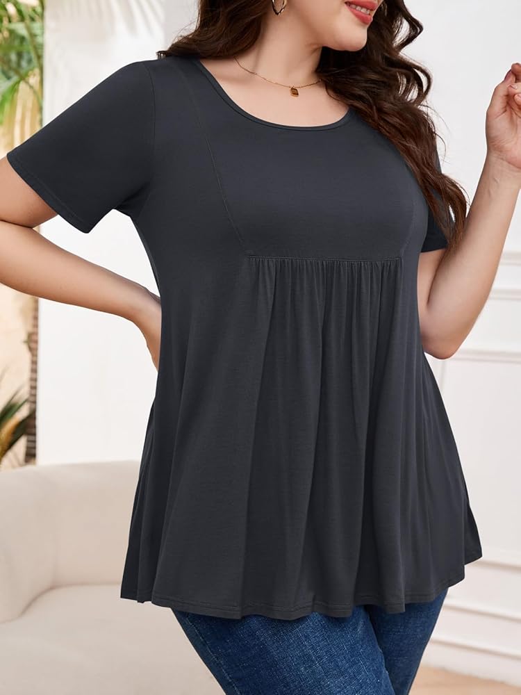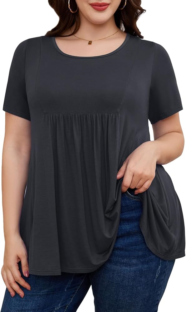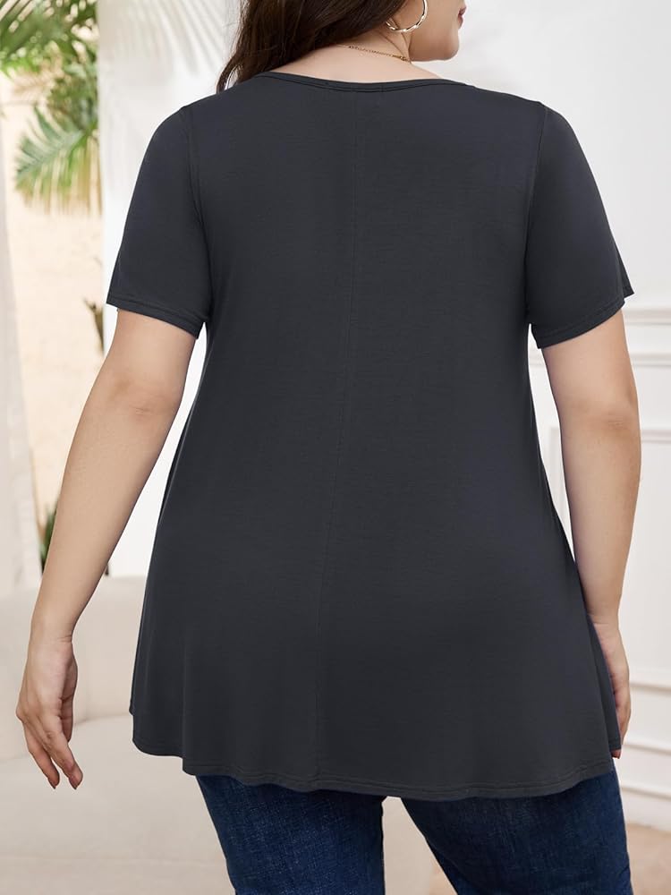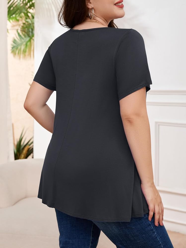 ميزات رائعة: قميص كلاسيكي بياقة مستديرة، طراز تونيك كاجوال، تصميم بأكمام قصيرة وتصميم مطوي في الأمام، سيجعلك تبدو أنحف ويظهر سحرك الأنثوي