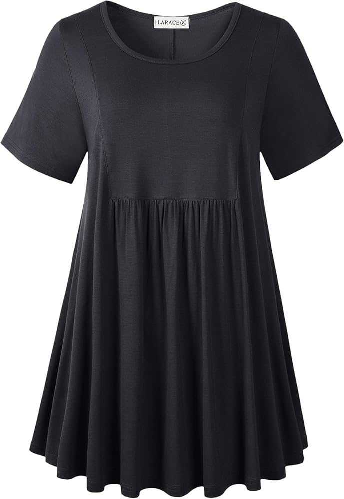 مواد عالية الجودة: تتكون قمصان التونيك النسائية ذات الحجم الكبير من LARACE من 95% رايون و5% ألياف لدنة، وهي ناعمة جدًا ومريحة ومرنة وخفيفة الوزن