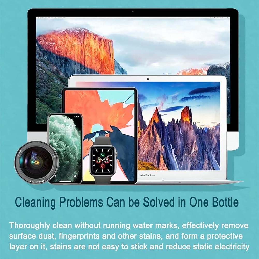 【منظف الشاشة】: بخاخ منظف لشاشة الهاتف، امسح الشاشة المتسخة دون استخدام أدوات تنظيف متعددة. إنها ليست مجرد منظف، بل قطعة قماش للحفاظ على نظافة شاشتك في جميع الأوقات!