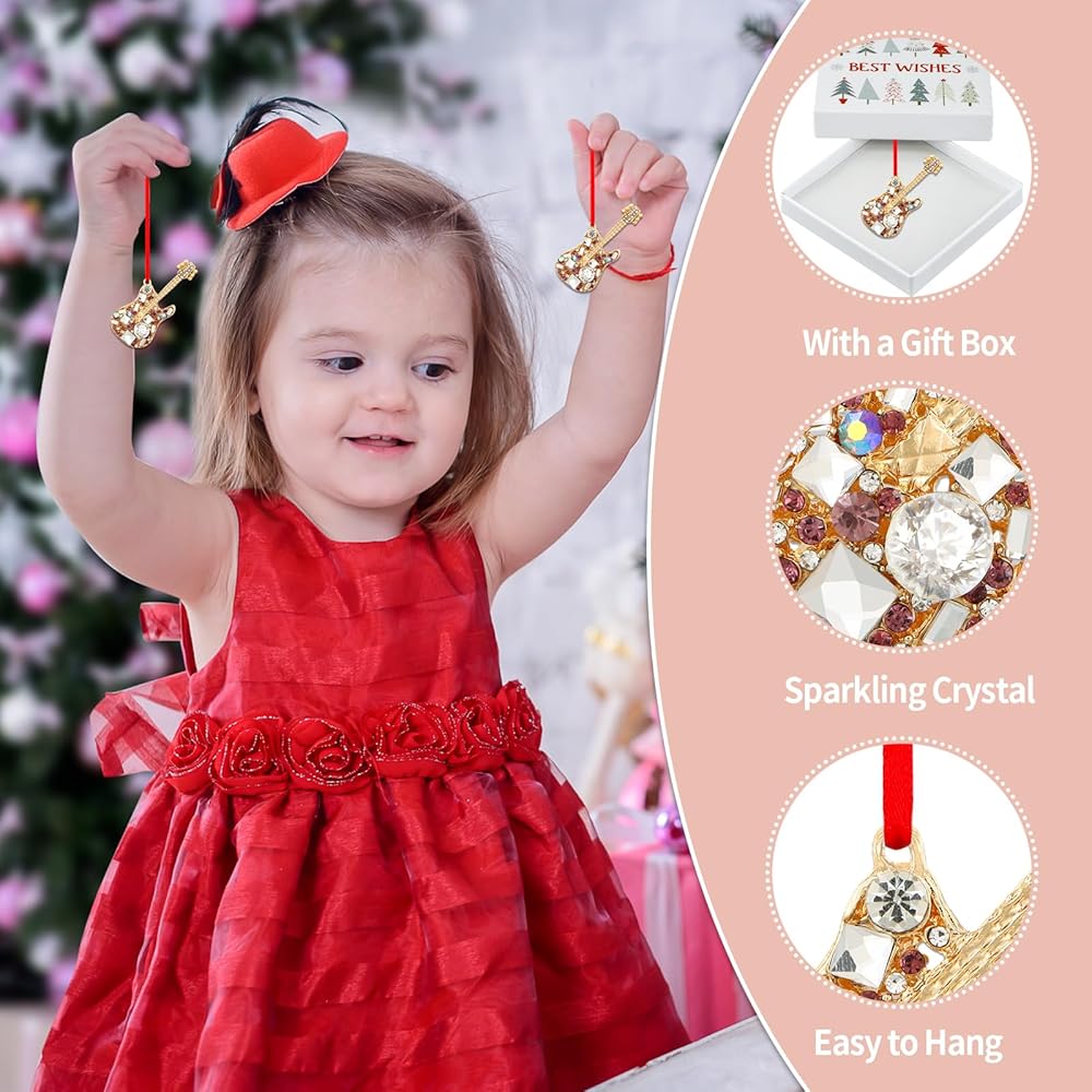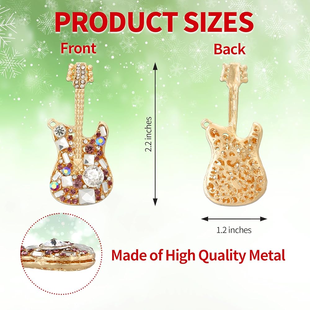 【الخامة: زينة الجيتار مصنوعة من مواد معدنية عالية الجودة، مع المتانة والملمس، ومناسبة للاستخدام والعرض على المدى الطويل. تم دمج الحلي المعلقة للجيتار الكهربائي مع الماس الشفاف والكريستال الأبيض، مما ينبعث منها ضوء ساطع من زوايا مختلفة، مما يخلق تأثيرًا بصريًا رائعًا وساحرًا.