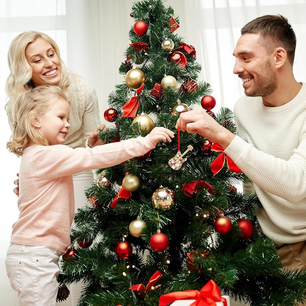 【المقاس】: يبلغ حجم زخارف الجيتار الزرقاء المتلألئة 3.25 × 1.2 بوصة تقريبًا. تتميز زينة عيد الميلاد لموسيقى الجيتار بتصميم مجوف، مما يقدم تفاصيل وملامح الجيتار الكهربائي.
