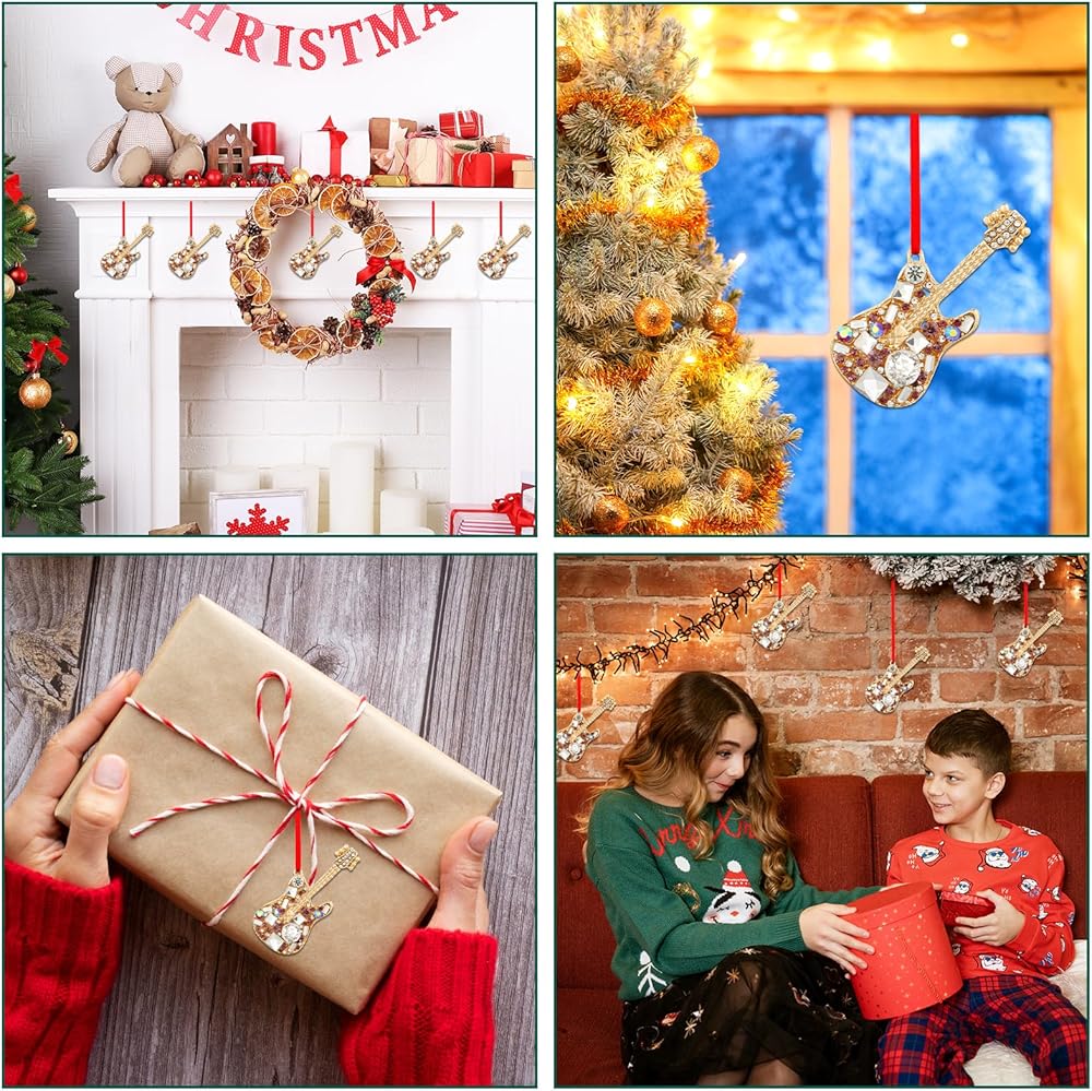 【استخدامات متعددة】: بالإضافة إلى استخدامها كديكور لأشجار الكريسماس، يمكن استخدام زخارف جيتار الكريسماس هذه أيضًا للديكورات الداخلية الأخرى مثل الجدران والمدفأة والنوافذ وما إلى ذلك، مما يضيف جوًا احتفاليًا وشخصية.