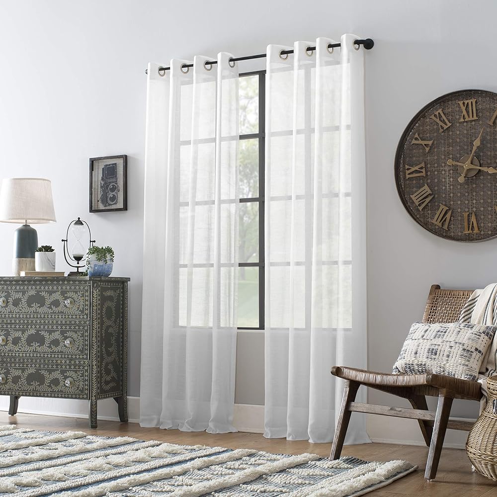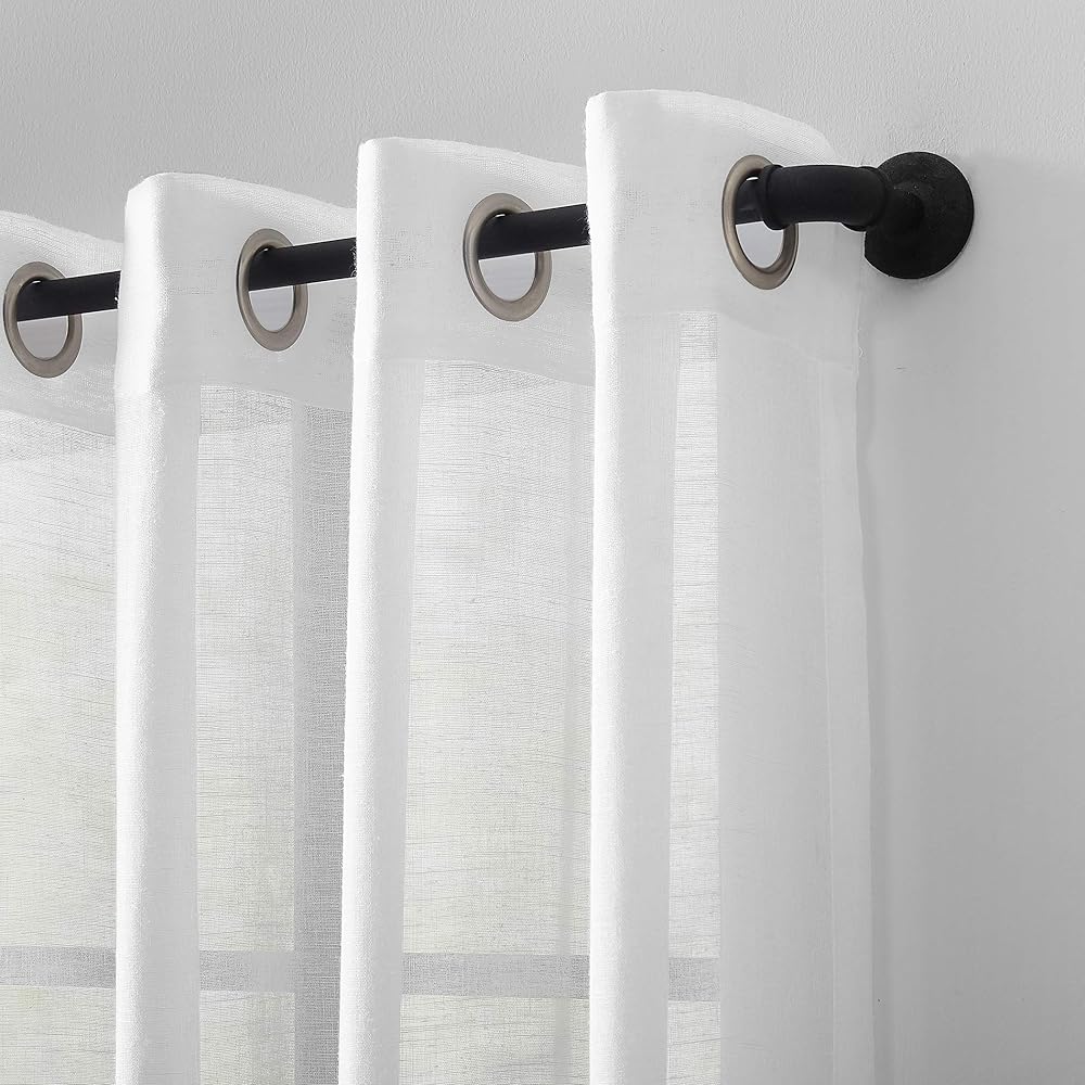 Add a touch of rustic charm to your home with this set of 2 solid white linen blend panels from Archaeo. The slub texture and semi-sheer fabric create an organic look perfect for a kitchen, bedroom or living room. Each panel measures 52 inches wide by 84 inches long and features a grommet top design that fits standard 1.5 inch curtain rods. The panels are made from a polyester and linen blend that is machine washable for easy care. With its simple yet stylish look, this set of 2 panels from Archaeo is an easy way to refresh your window treatments.