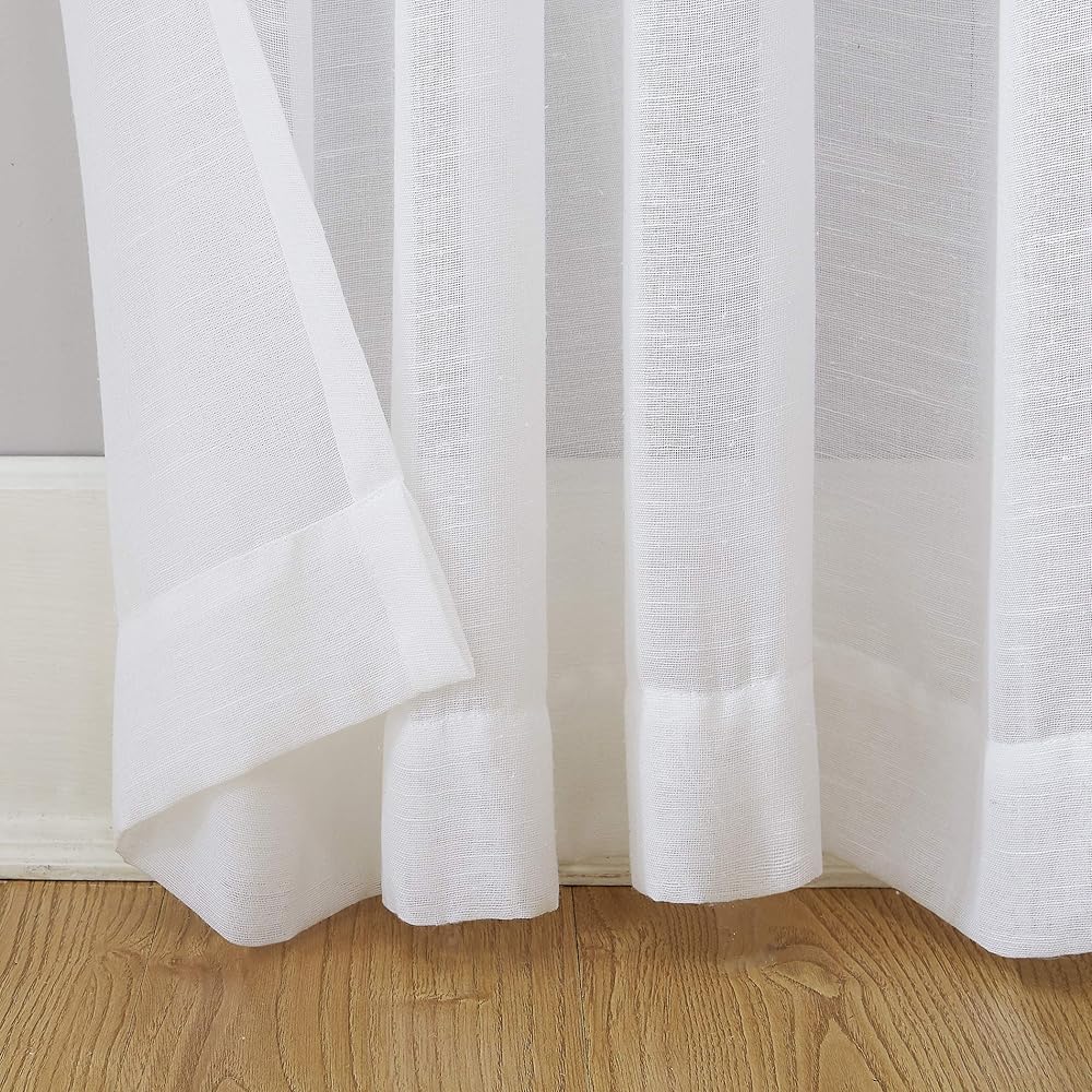 Linen blend semi-sheer fabric gently filters light while adding privacy