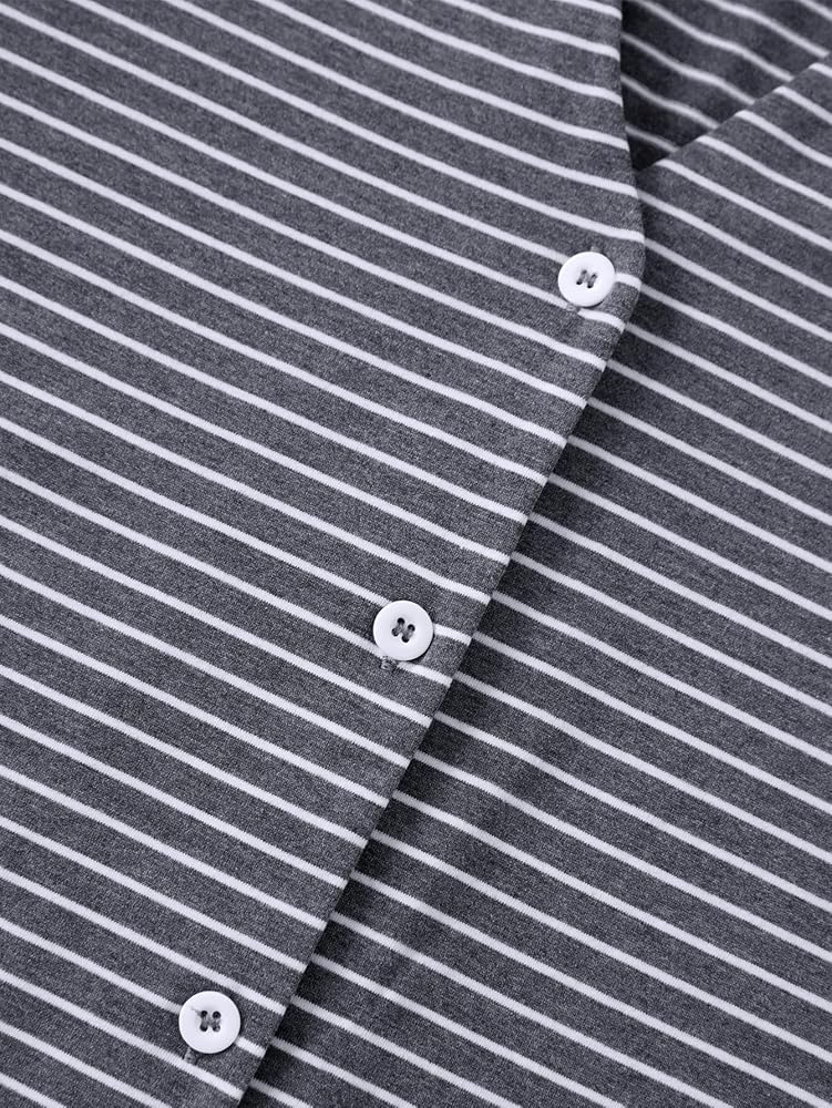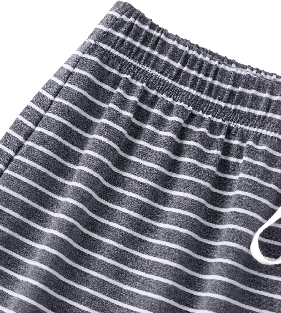 صالة القطن المخططة ذات الأكمام القصيرة للربيع والصيف والخريف، مثالية لملابس النوم أو ملابس النوم أو ملابس الاسترخاء أو العودة إلى الوطن أو ليالي شهر العسل أو ليالي التاريخ أو غرفة النوم أو حفلات الملابس الداخلية أو الليالي الخاصة.