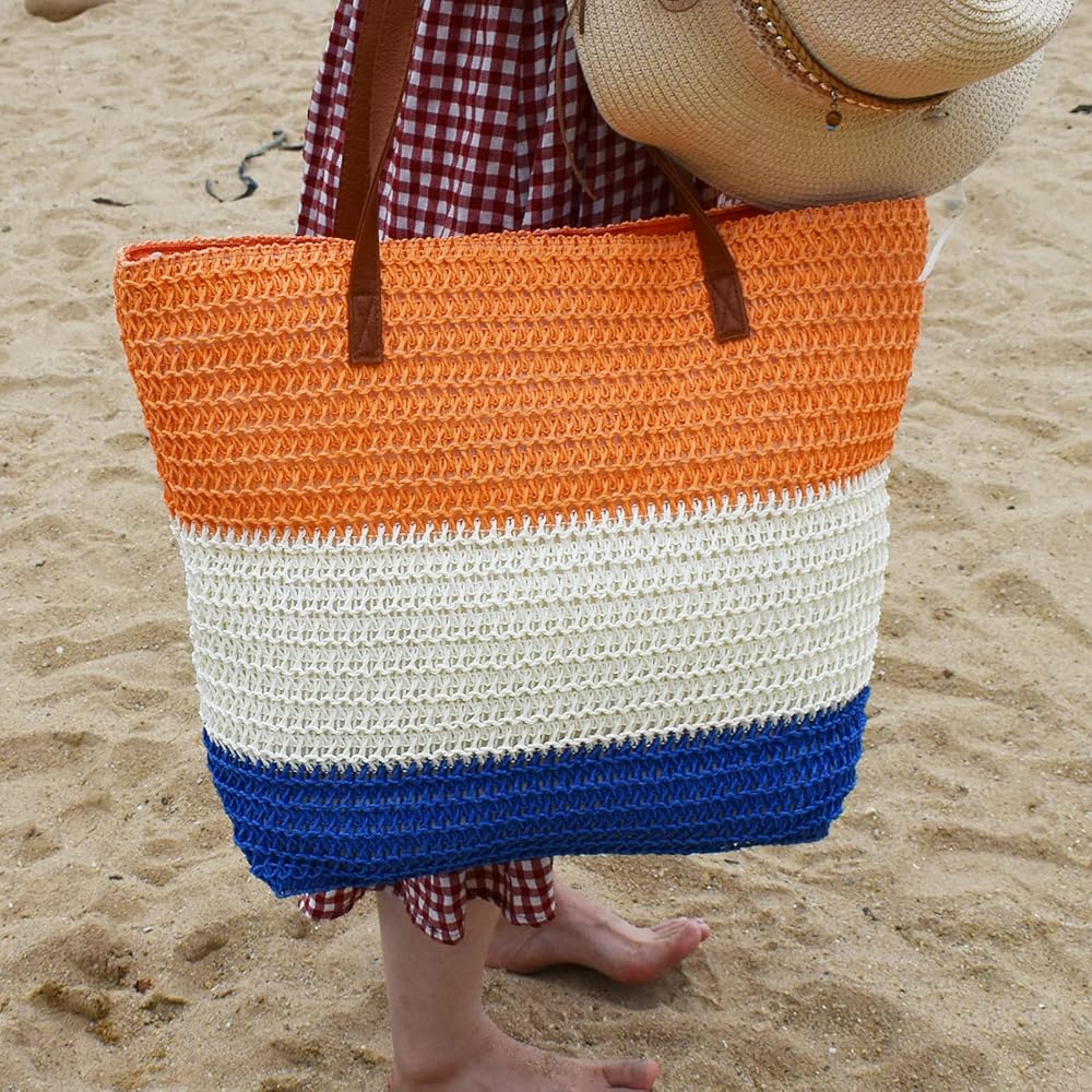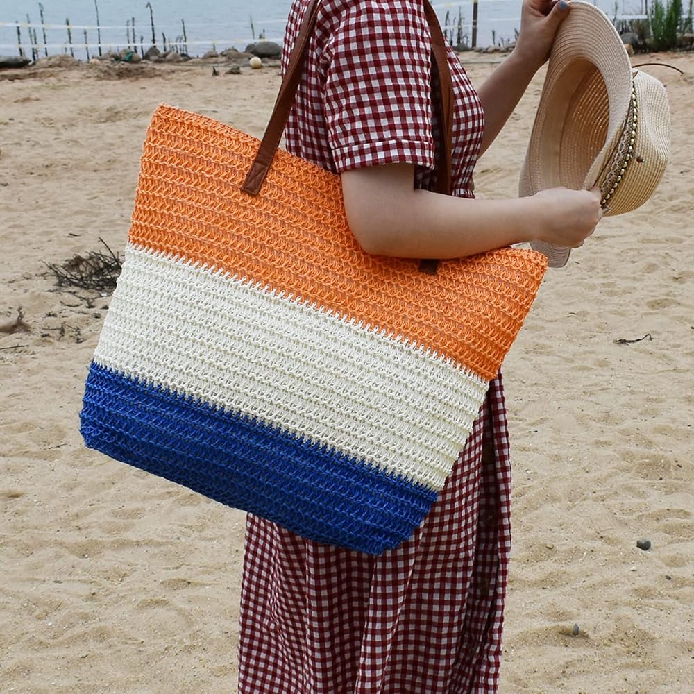 - تتميز حقيبة الشاطئ هذه بمقابض مريحة وقوية، مما يوفر سهولة الحمل ويمكن حملها باليد أو على الكتف.