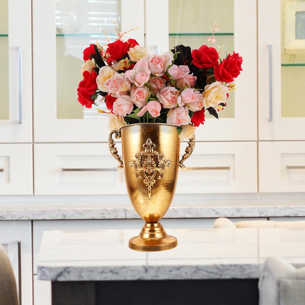 جرة تذكارية عتيقة، مزهرية ريفية فرنسية، وعاء معدني للقطع المركزية للمناسبات، وحفلات الزفاف، والحفلات، وترتيبات الزهور، هذا النبات هو الإضافة المثالية لأي ديكور عتيق أو أنيق، مما يضيف لمسة من الأناقة والأناقة.