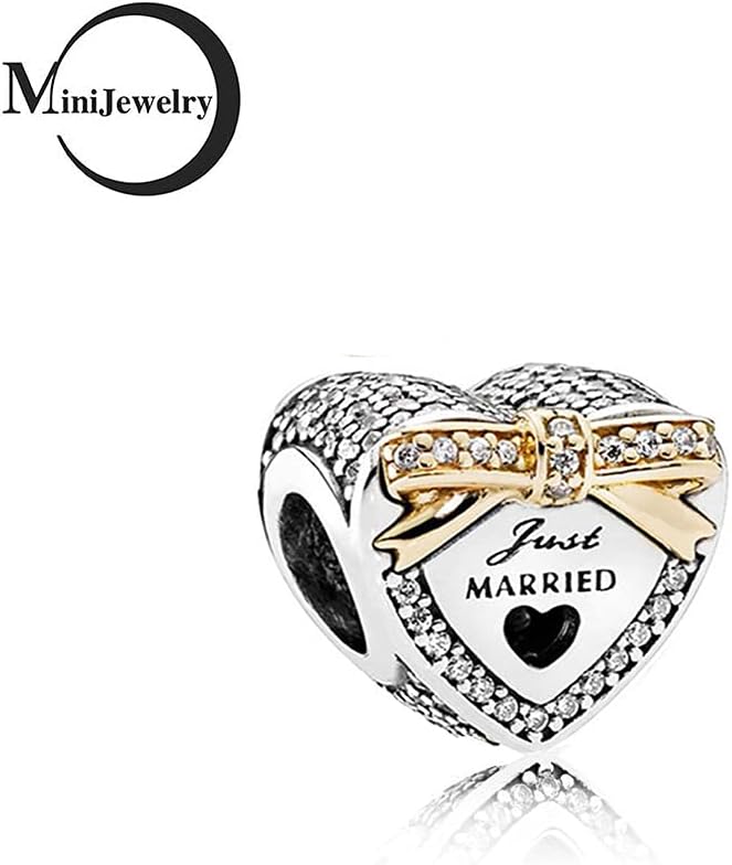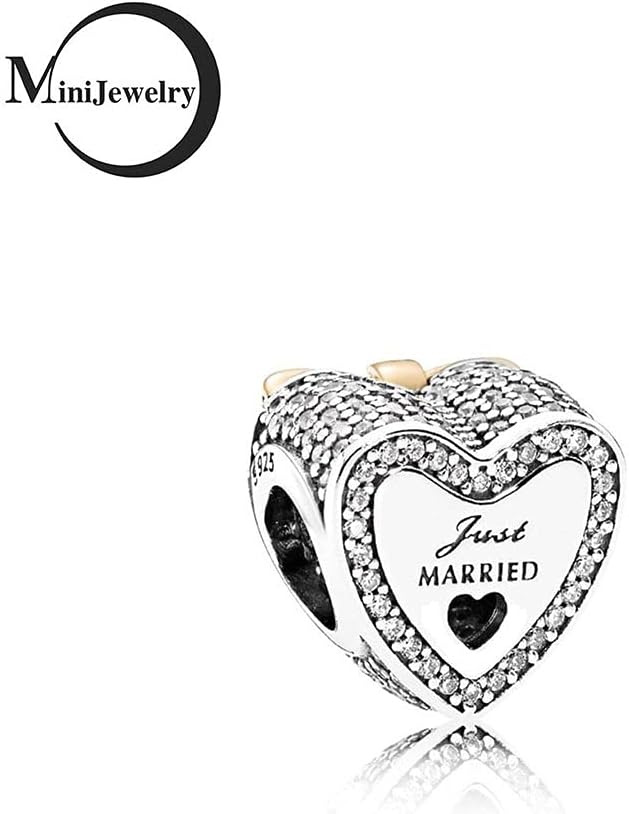 Engraved "Just Married" Wedding Love Heart Charm with Sparkling Cubic Zirconia.