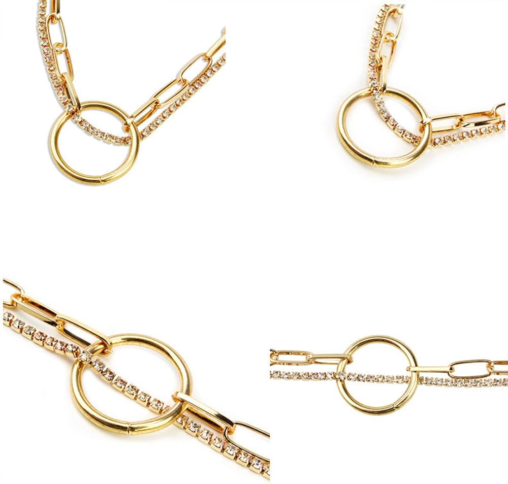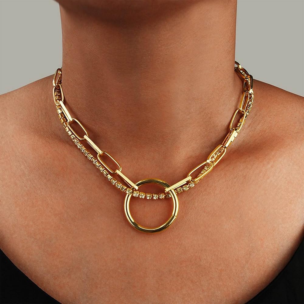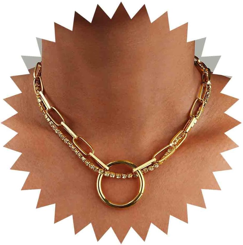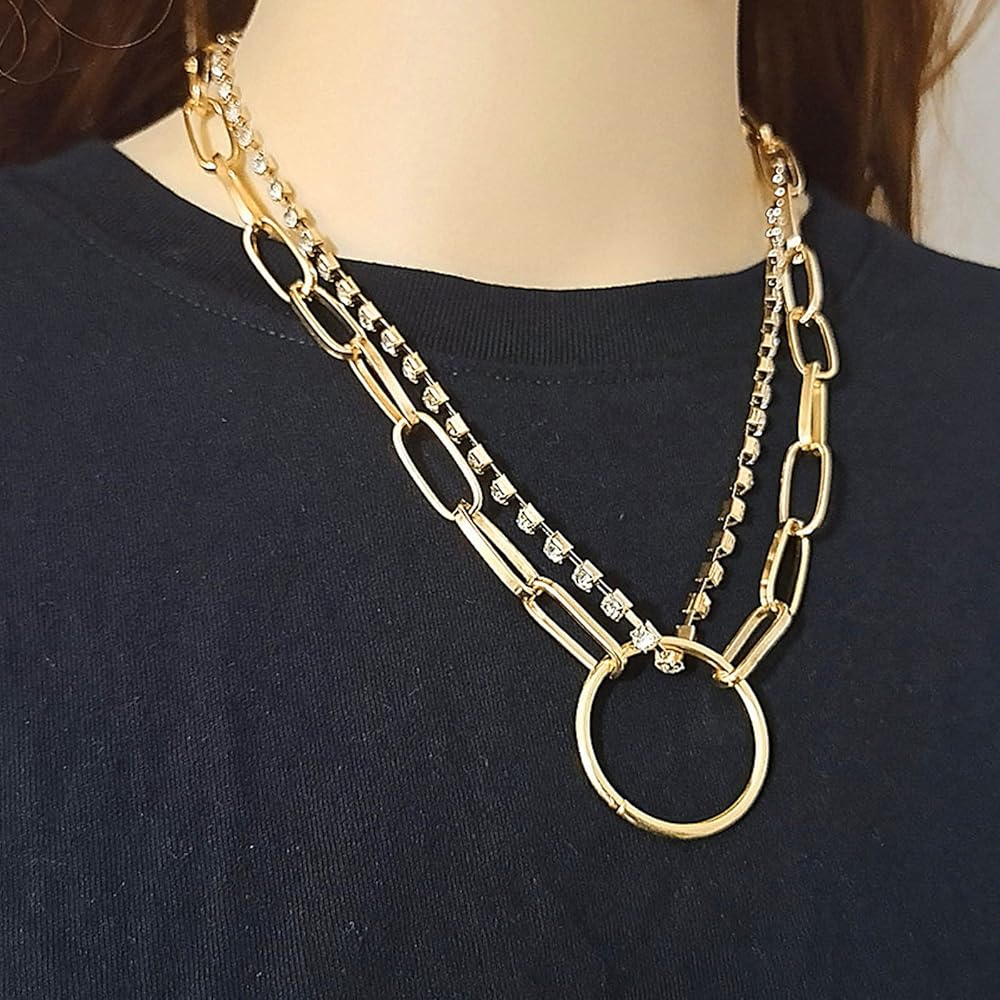 فاسق الطبقات دائرة كريستال المختنق قلادة الذهب حجر الراين سلسلة قلادة دائرة كبيرة قلادة قلادة مكتنزة مشبك ورق سلسلة قلادة روك بيان قلادة مجوهرات للنساء