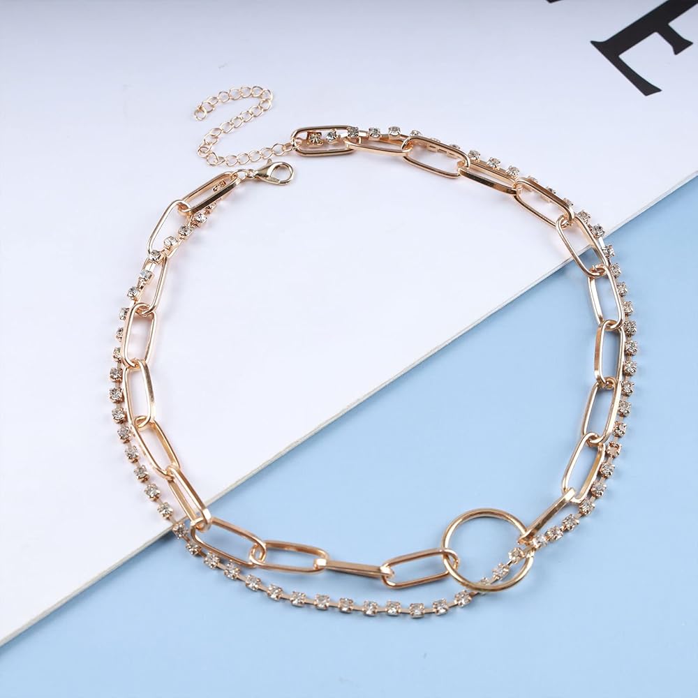 Features: Statement layered rhinestone choker necklace, no matter what season, you can choose any style you like with other accessories.