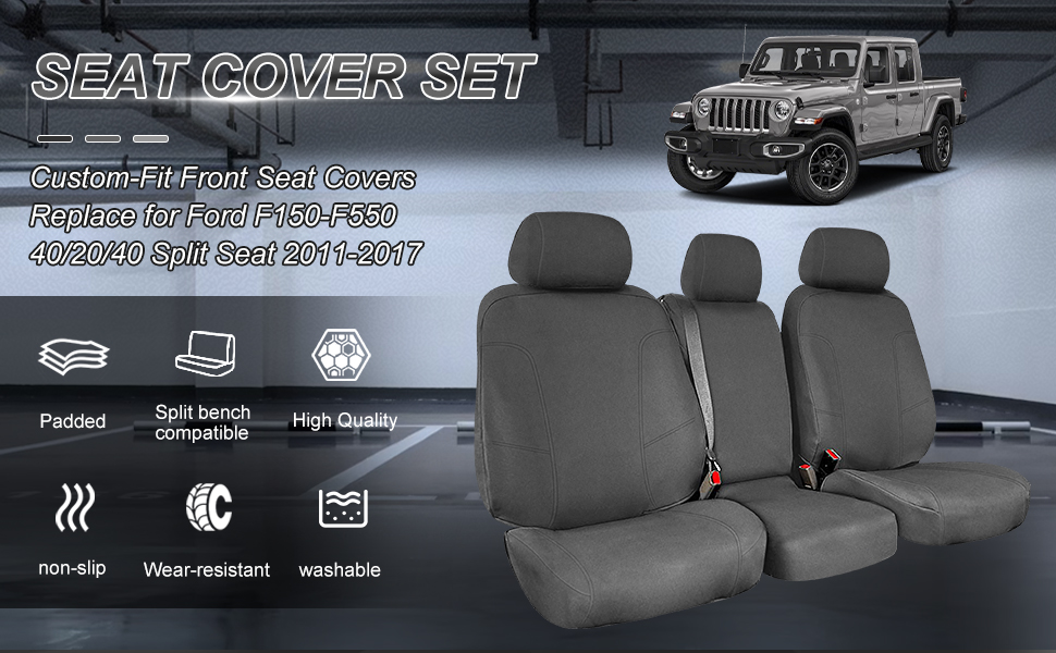 - الملاءمة: أغطية المقاعد تحل محل Ford F150-F550 40/20/40 Split Seat 2011-2014