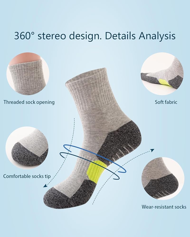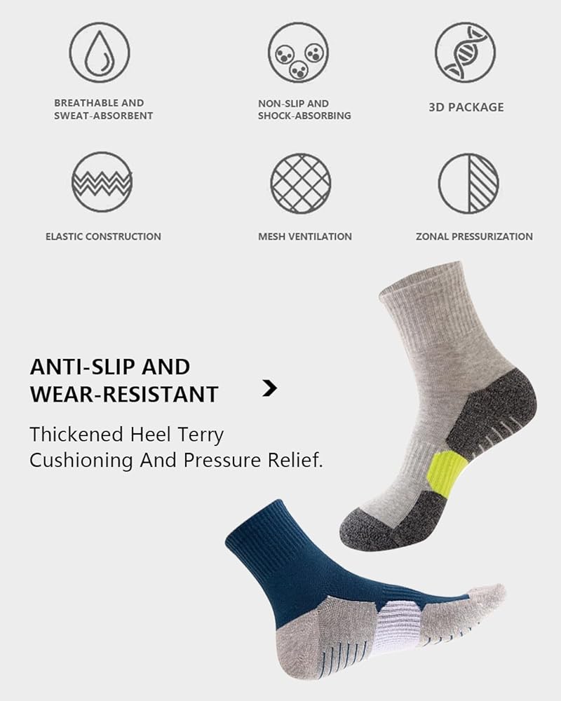 المادة: الجوارب الدائرية مصنوعة من 97% قطن، 3% سباندكس، الذي يمتص الرطوبة والعرق بسرعة، والمنطقة الشبكية المسامية تعزز الدورة الدموية، مما يساعد على الحفاظ على قدميك جيدة التهوية وباردة ومريحة، ومثالية طوال العام. ارتداء، سواء في الصيف والشتاء!