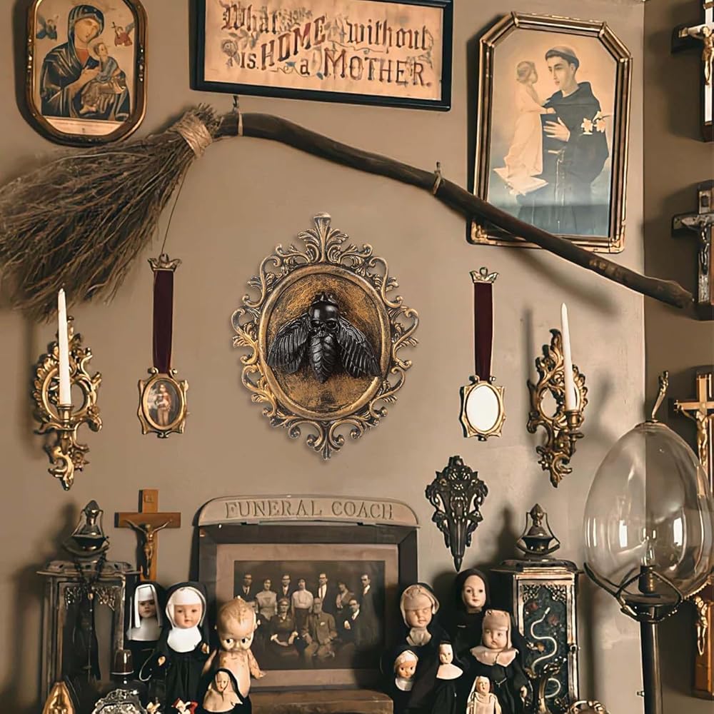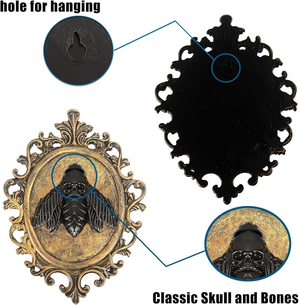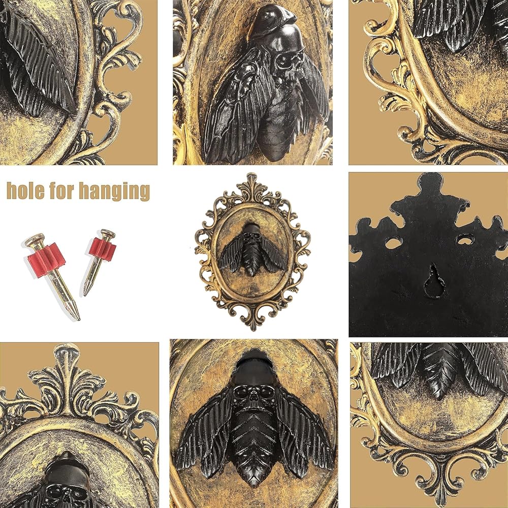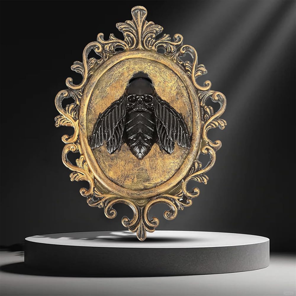 ELEGANT DESIGN:The combination of the golden frame and black bat head is not only unique but also imbued with artistic flair; hang it above your bed, on the wall, or in a corner to instantly infuse an air of melancholy and eerie charm.