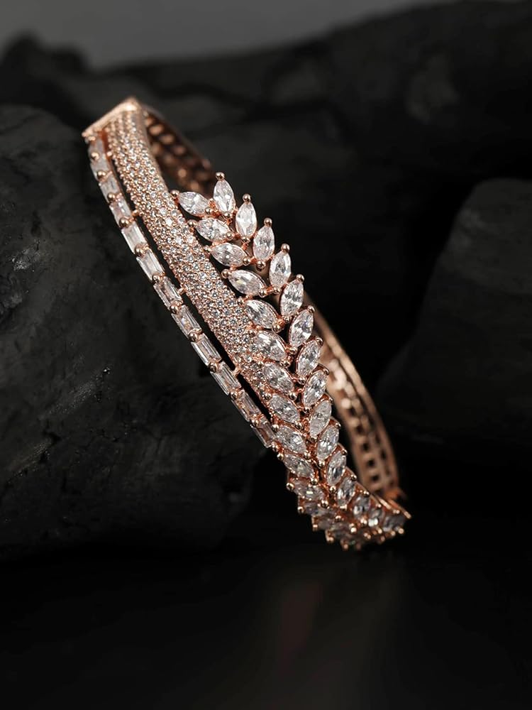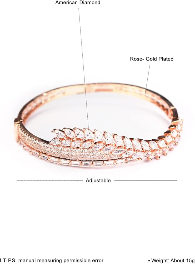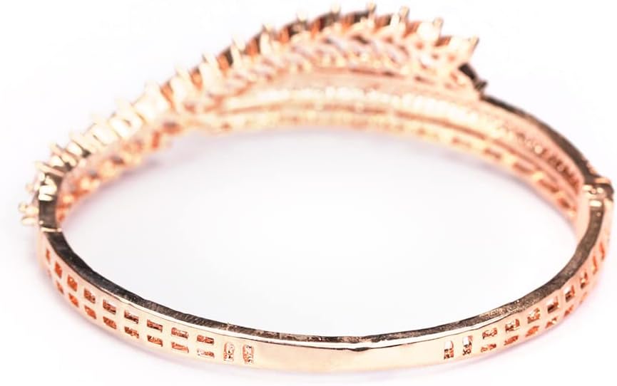 اللون: ذهبي وردي؛ المادة: نحاس؛ الحجر: الماس الأمريكي؛ الحجم: 4.5 سم؛ اظهري بمظهر أنيق مع هذا السوار المذهل الذي يتميز بخفة الوزن والعصرية والعصرية للغاية عند ارتدائه. يمكنك إقرانه مع الملابس الحديثة والتقليدية.