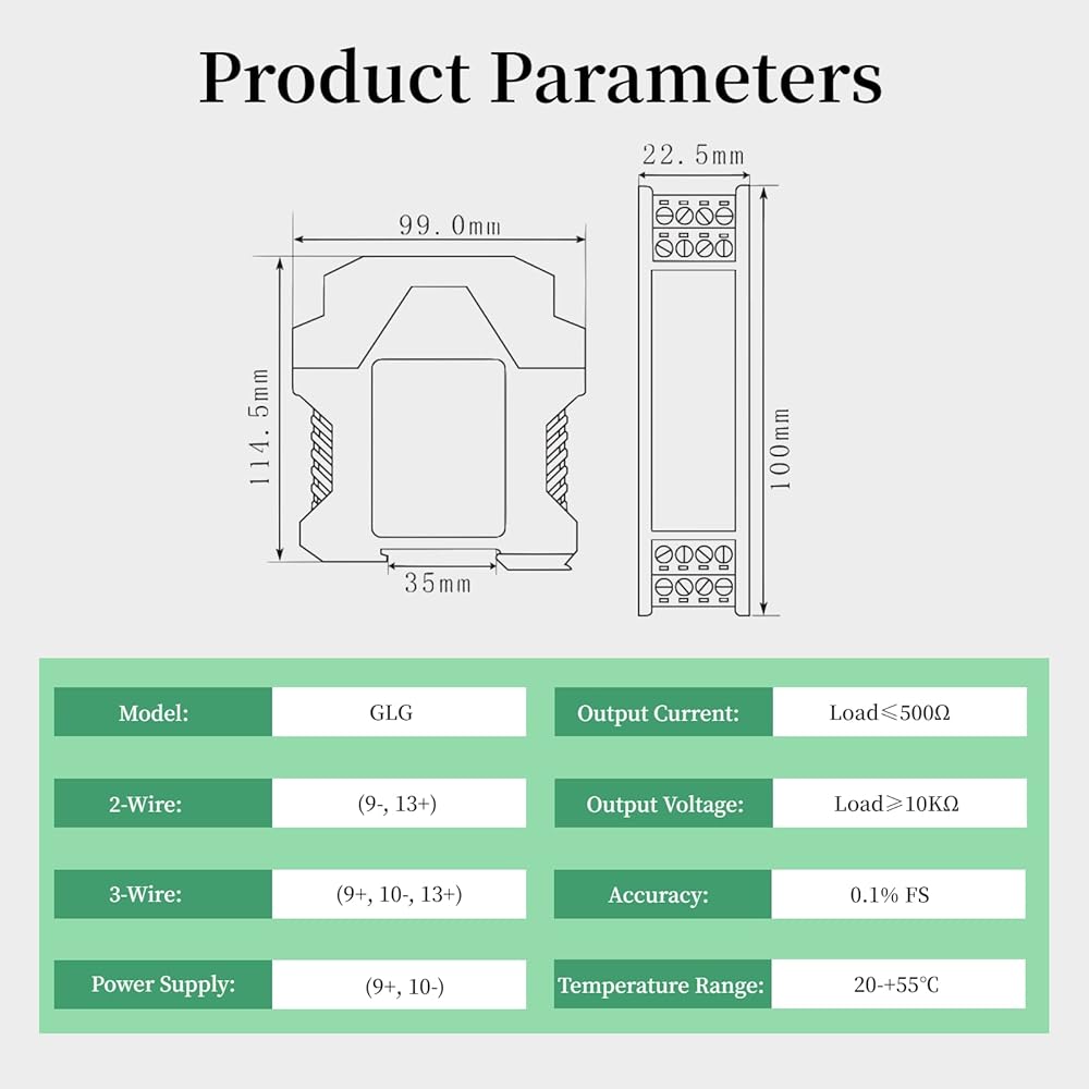 مزايا المنتج - يتميز مكيف الإشارة DC بدقة تحكم داخلية عالية، ووقت استجابة سريع 10 مللي ثانية، وعزل عالي القوة لوصلات طاقة الإدخال والإخراج، وقوة عازلة عالية، والقضاء على التداخل الكهرومغناطيسي أحادي المصدر، ودائرة ترشيح فعالة لقمع تموج الإخراج.