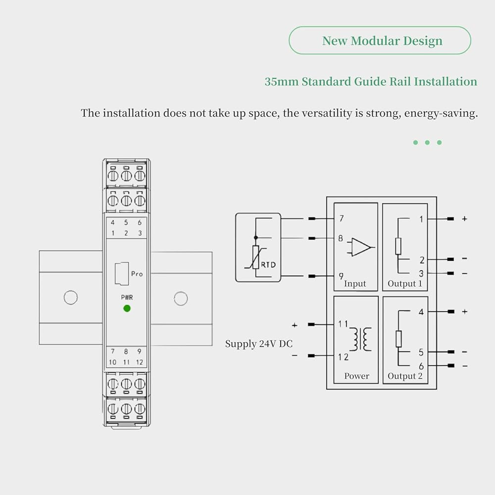 تنوع قوي - تركيب قضيب توجيه قياسي 35 مم، التثبيت لا يأخذ مساحة، وتنوع قوي. يوفر مصدر الطاقة DC24V توزيعًا معزولًا للطاقة لجهاز الإرسال الميداني، وهو أكثر أمانًا وموفرًا للطاقة.