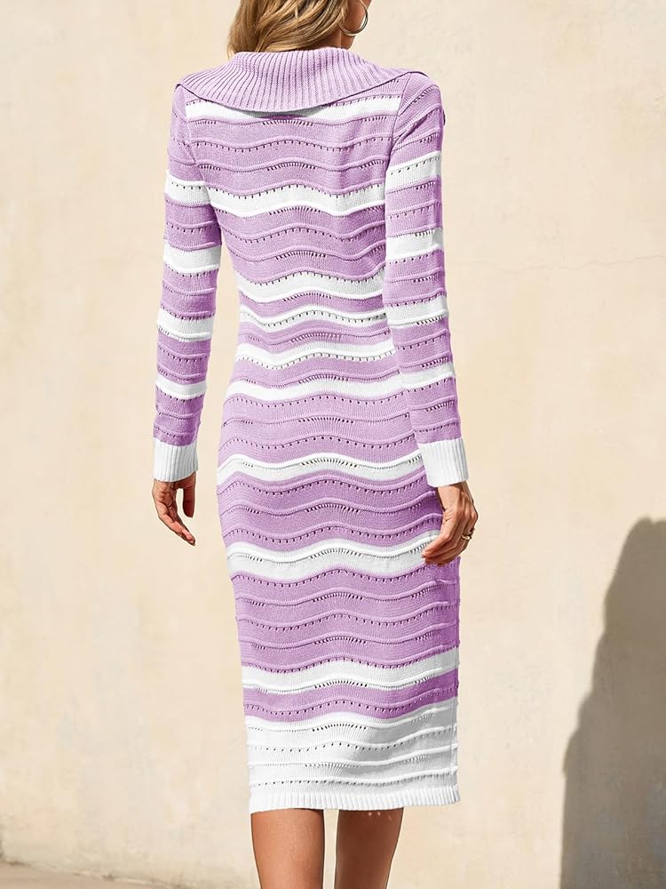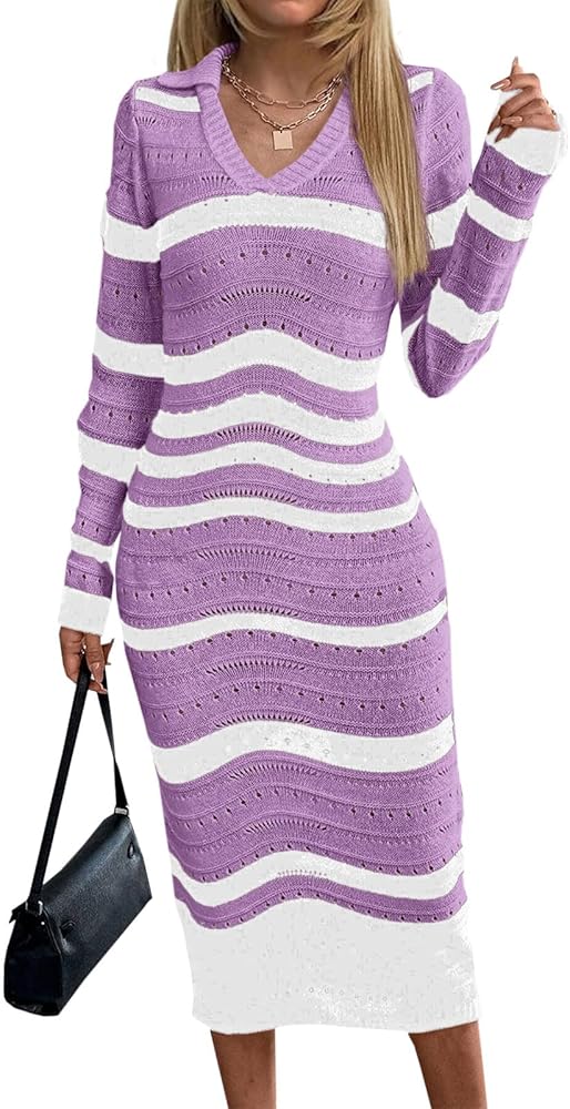 المادة: 100% بوليستر. الفستان طويل الأكمام للنساء مصنوع من نسيج محبوك مدبب، مسامي، ناعم ومريح للارتداء في الخريف والشتاء وأوائل الربيع.