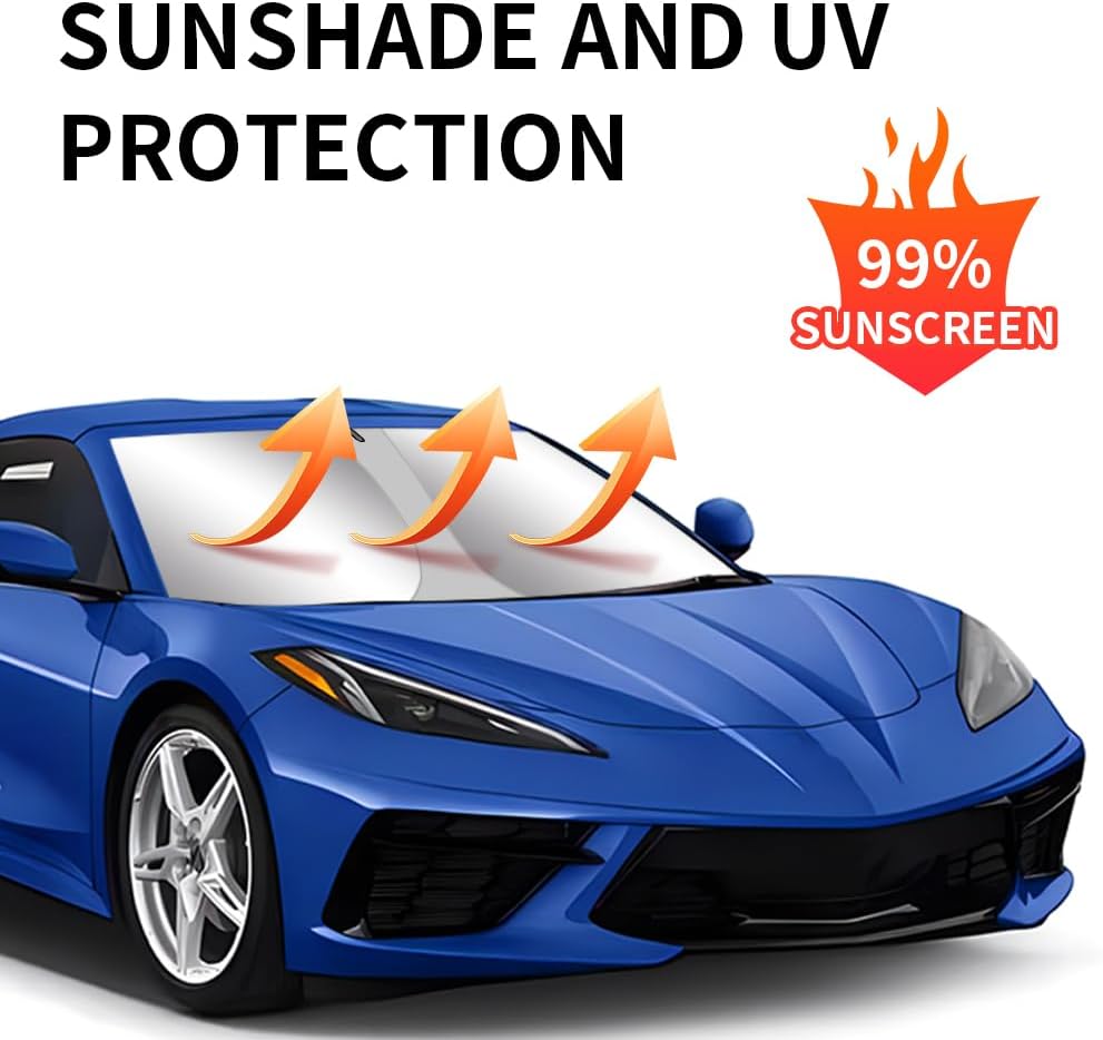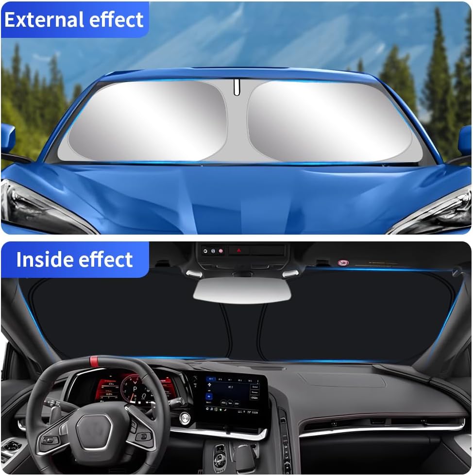 ✅【مواصفات السيارة】غطاء تظليل الزجاج الأمامي الخاص بنا مناسب خصيصًا لسيارة Chevy Corvette 2020-2024. تصميم ملائم بدقة وحلقات فولاذية معززة تجعل ملاءمة دقيقة وآمنة للنافذة، لا حاجة لاستخدام أكواب الشفط لتثبيتها في مكانها، بدون فجوة، ملاءمة مثالية بنسبة 100%.