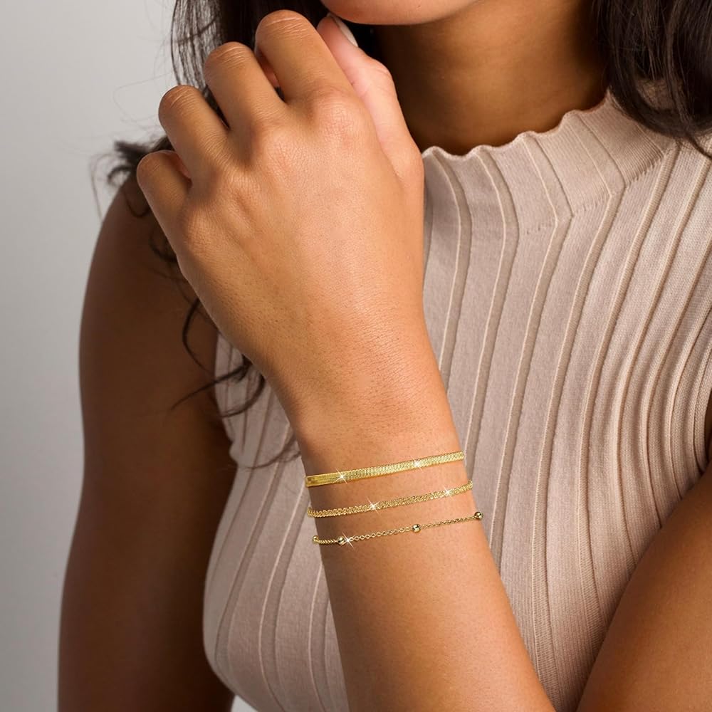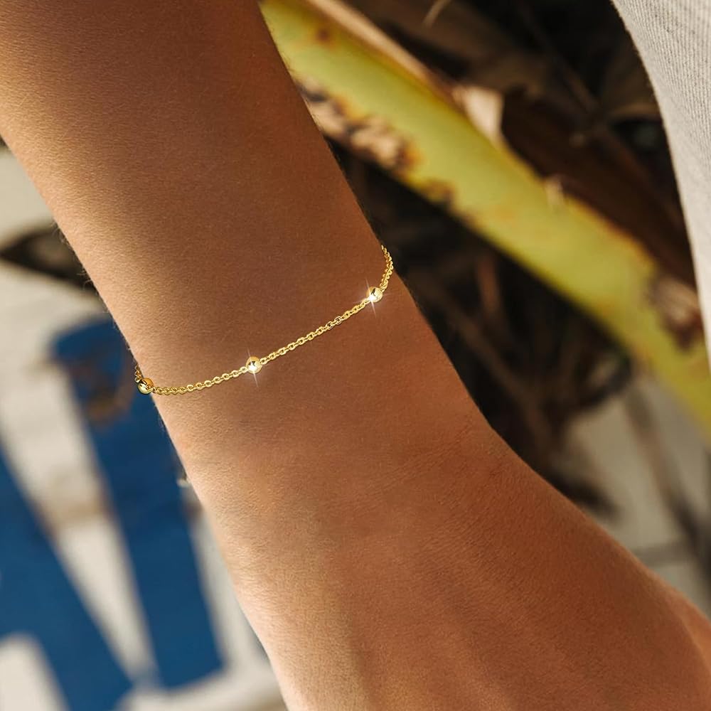 ❤أساور مطاطية❤ يتم ربط عدد من الخرزات الذهبية معًا بخيط مرن للغاية. سهل الارتداء والخلع ولا ينكسر بسهولة. هذه الأساور الذهبية العصرية تناسب النساء، ومريحة لمعظم معاصم الأشخاص.