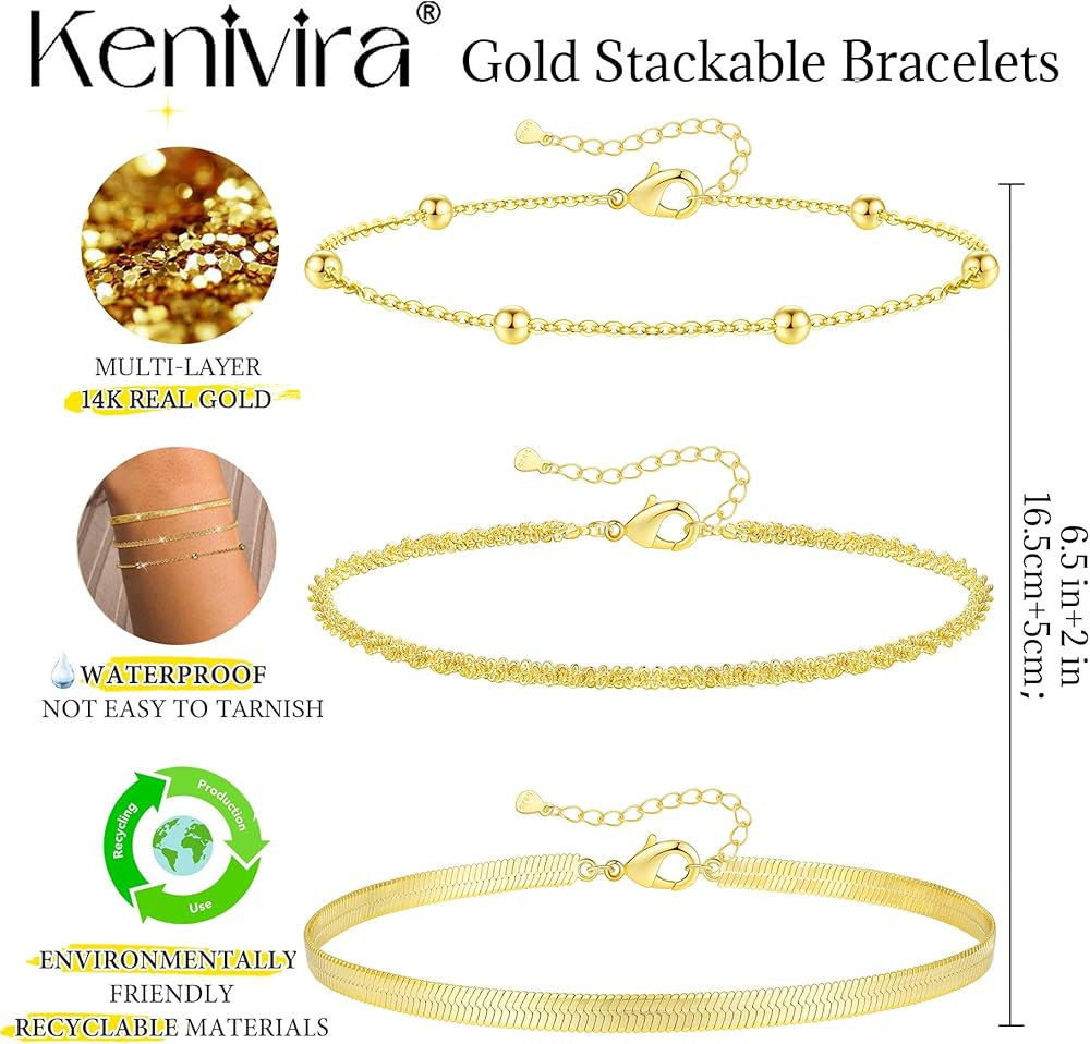 ❤أساور مطلية بالذهب عيار 14 قيراط❤ أساور كينيفيرا الذهبية مصنوعة من خرز نحاسي عالي الجودة مع طلاء ذهب عيار 14 قيراط ومربوطة معًا بشريط مطاطي. القلادة الأولية مطلية أيضًا بالذهب عيار 14 قيراطًا من أجل المتانة والتشويه.