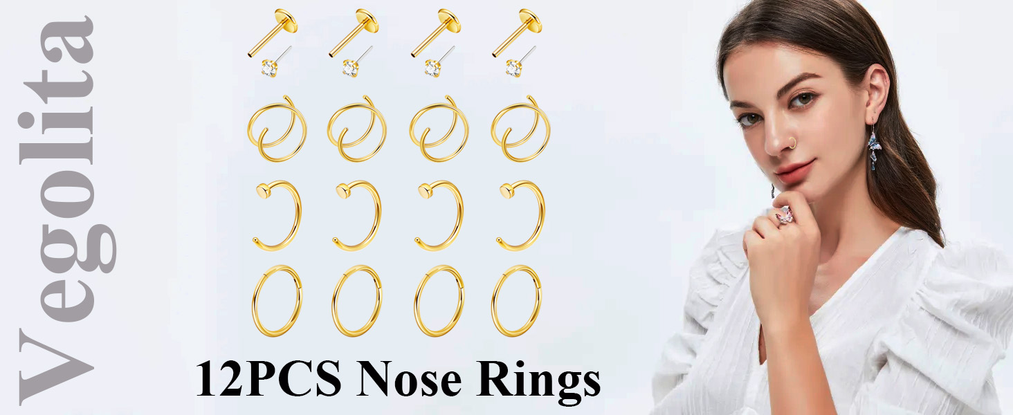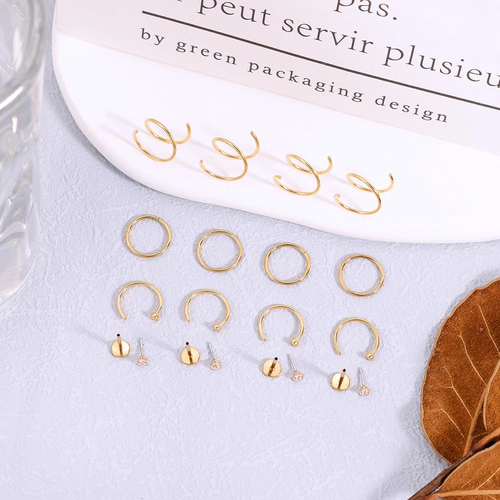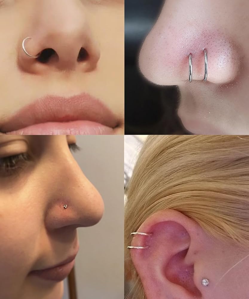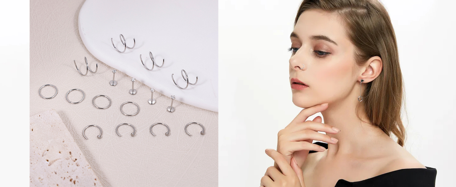 حلقة أنف مزدوجة: يمكن استخدام حلقة الأنف هذه ليس فقط لثقب الأنف ولكن أيضًا لثقب الغضروف، وثقب الحلزون، وثقب التراغوس، وثقب المحار، وما إلى ذلك. يمكنك ارتداؤه في أي جزء تريده