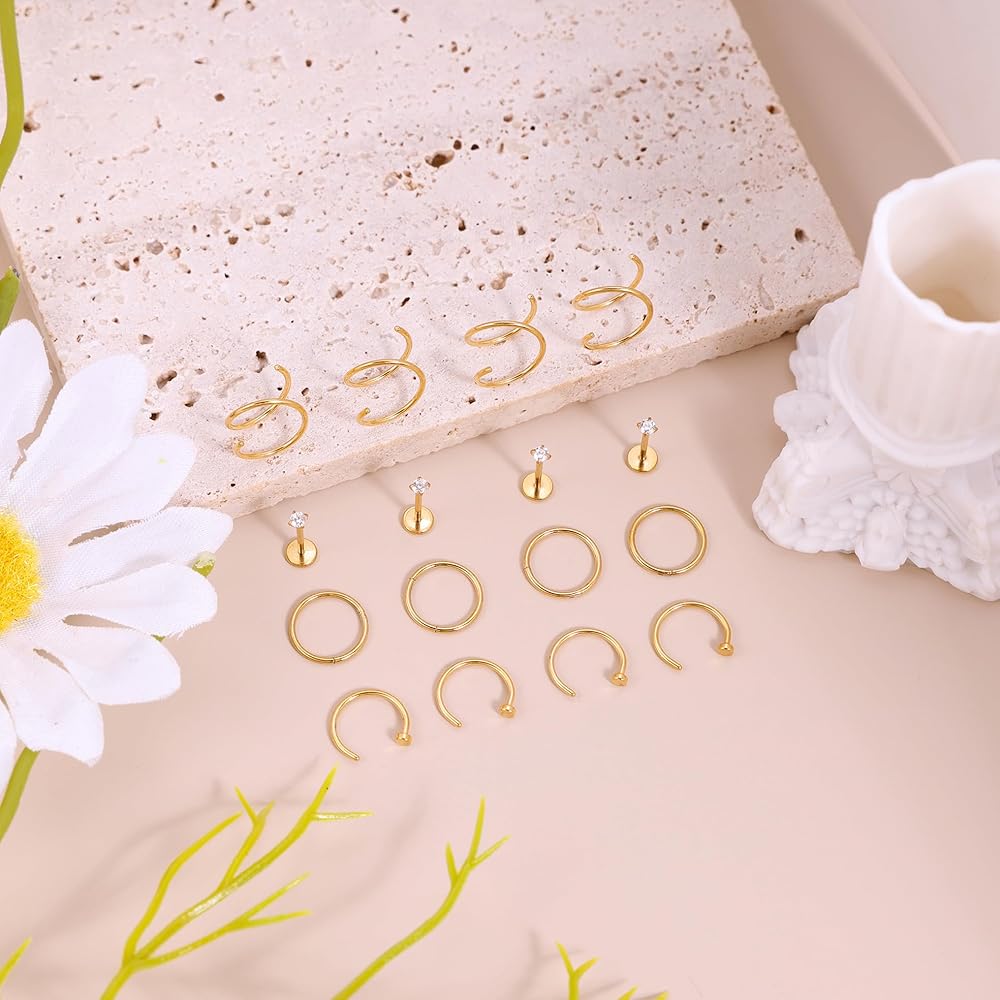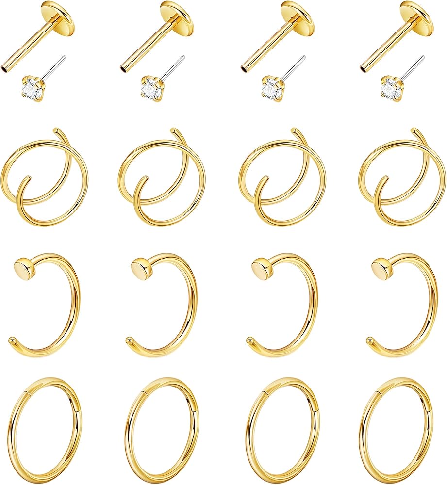 16 قطعة 20 جرام 316L حلقات الأنف من الفولاذ المقاوم للصدأ للنساء والرجال حلقة الأنف المزدوجة تشيكوسلوفاكيا دفع في الأنف مسمار الفرس يتوقف الأنف هوب ثقب المجوهرات