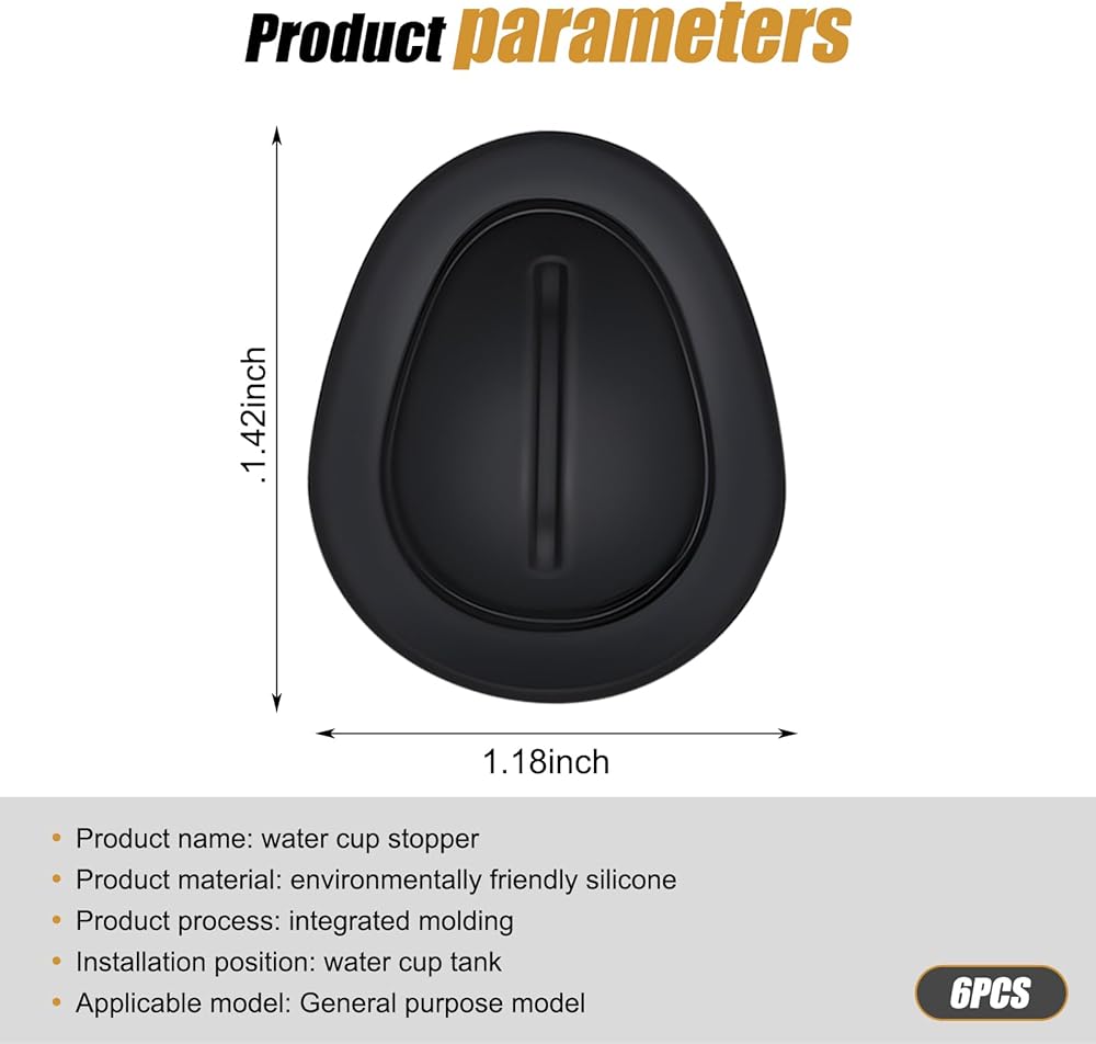 Universal Accessories: The package includes 6 pieces of water cup stoppers, 1.41" long, 1.18" wide, 0.35" thick, universal cup body design, excellent elasticity does not affect the diameter of the original cup holder to accommodate the cup, and will not scratch the water cup.