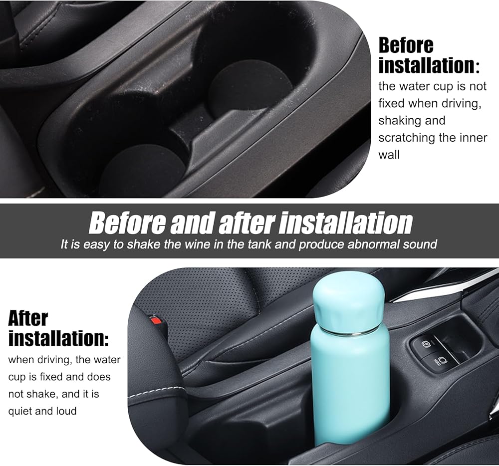 Fixed Water Cup: The car cup holder can accommodate most water cups. Cups are of different sizes. During driving, the cup holder will often be bumped and scratched. Through this silicone positioner, the triangle principle and the round and full arc can fit tightly into the cup holder, fixing the water cup to avoid sliding back and forth and reducing rattling noise.