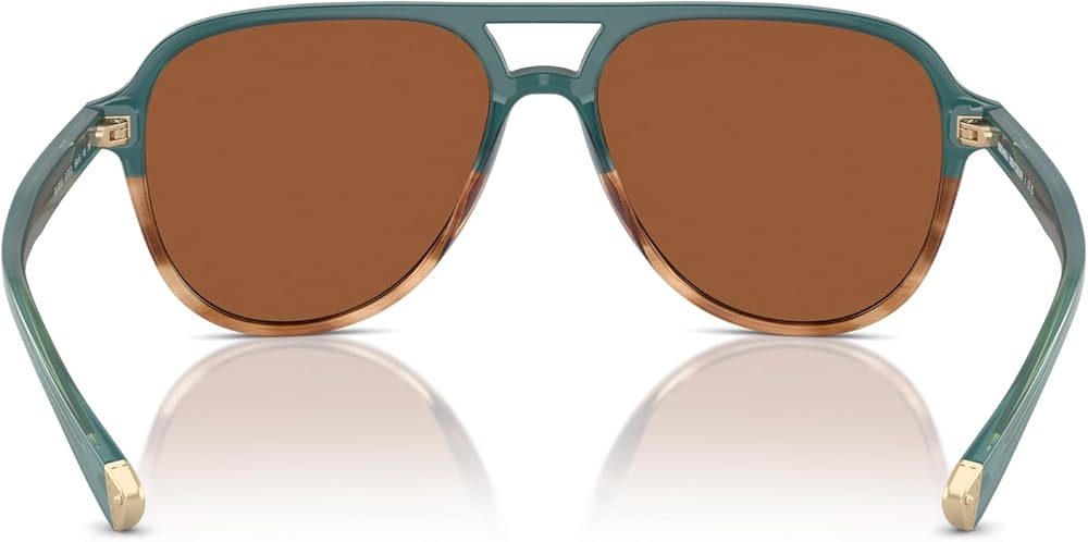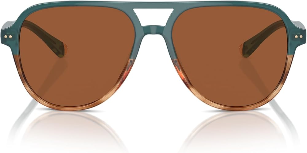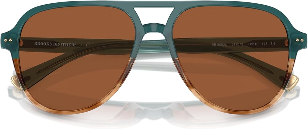FRAME FEATURES: BB5053U Universal Fit sunglasses feature an aviator, green and brown horn frame with brown lenses.