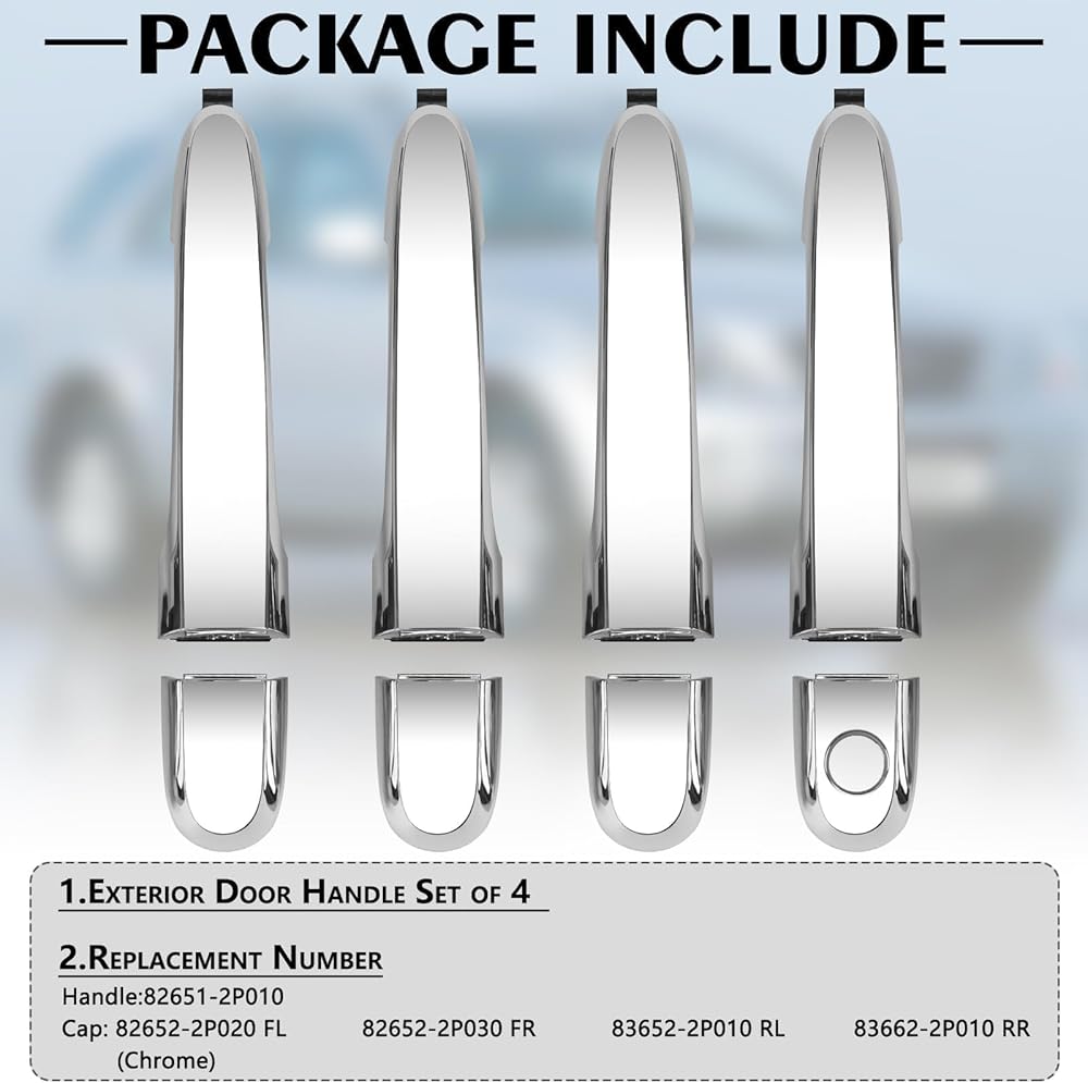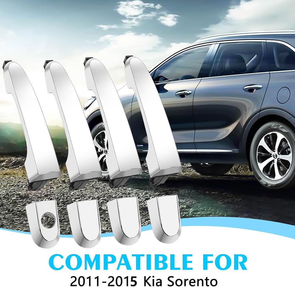 مقبض باب خارجي من الكروم متوافق مع سورينتو 2011 2012 2013 2014 2015 - يستبدل: 82651-2P010، 82652-2P030 (مجموعة من 4)