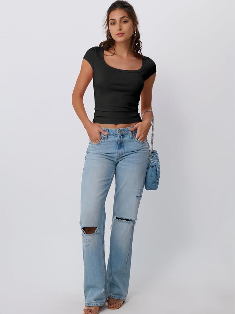 التصميم: رقبة مربعة بأكمام قصيرة، التصميم المصنوع بعناية يضمن مظهرًا أنيقًا مع الحفاظ على الراحة في الارتداء سواء تم ارتداؤه بمفرده أو مع طبقة لمزيد من الأناقة