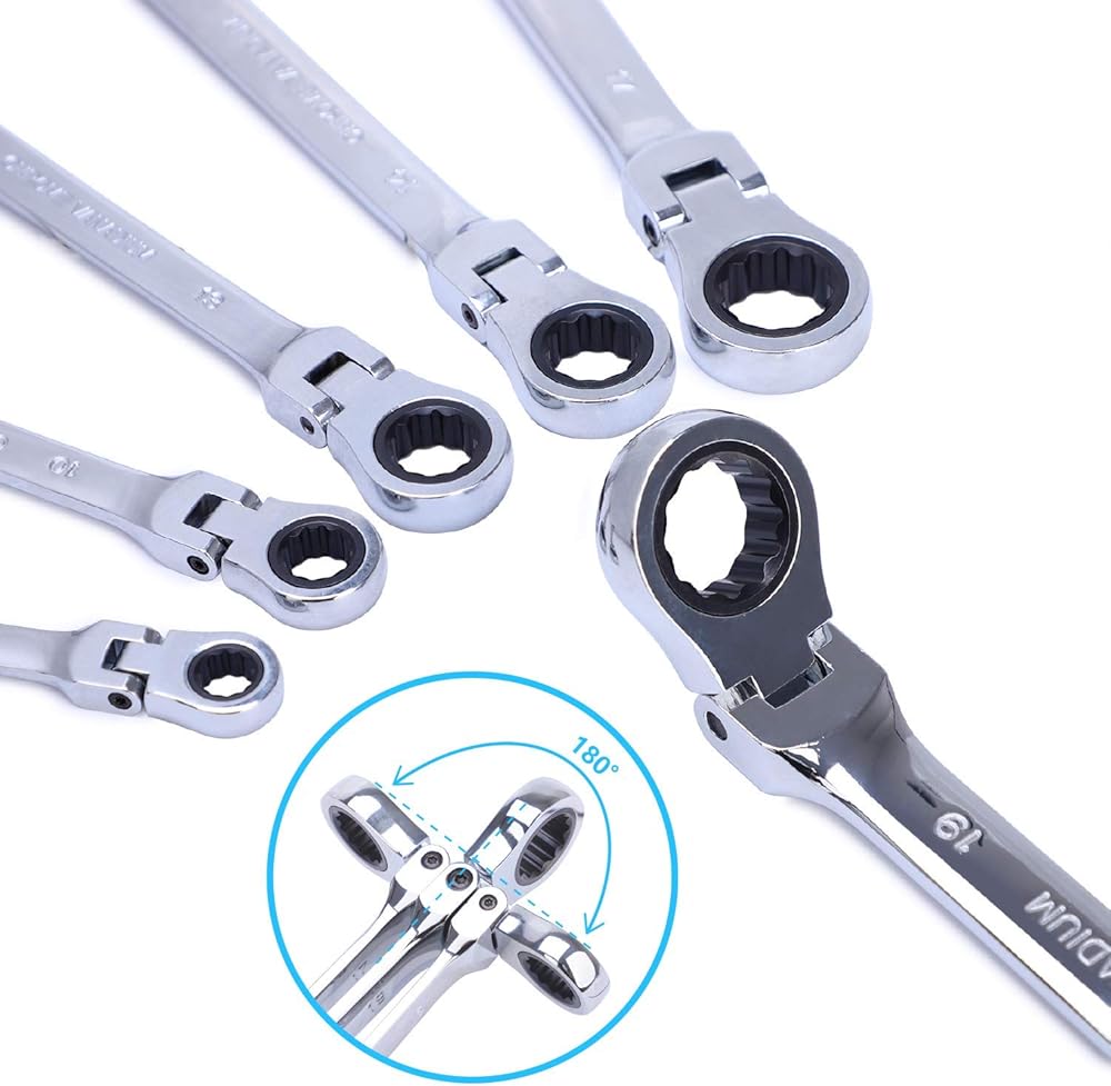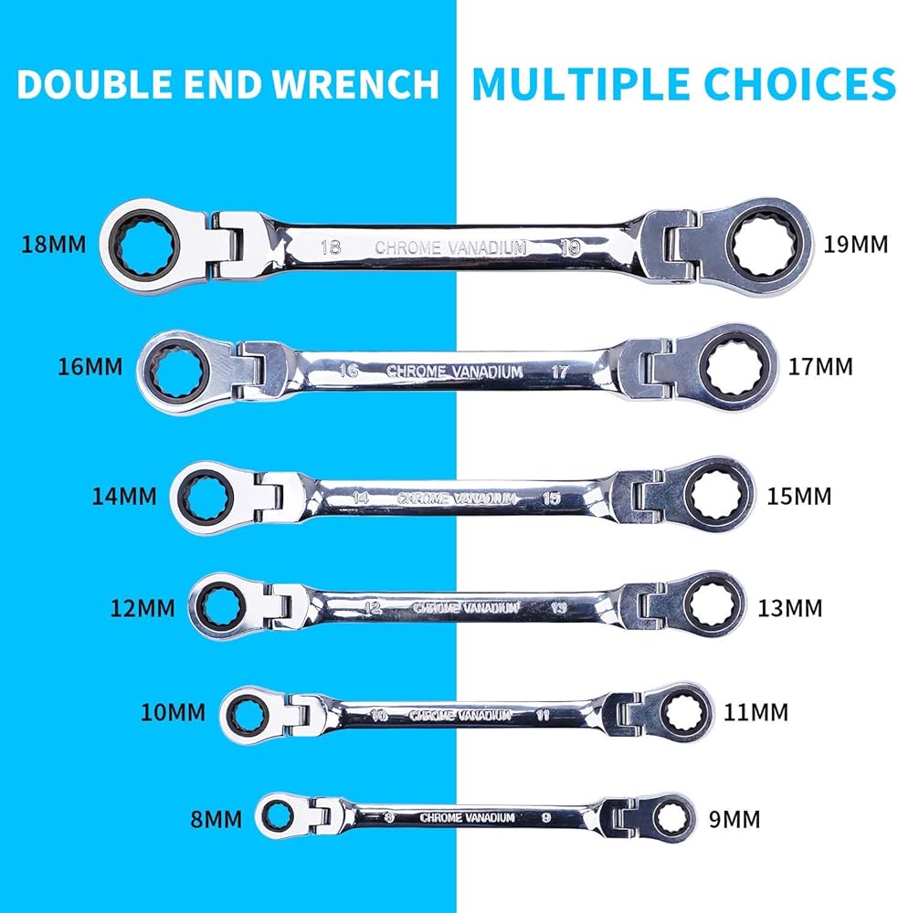 مجموعة مفاتيح ربط السقاطة المترية من BANG 4 BUCK، مجموعة مفاتيح ربط مزدوجة برأس مرن للحرفيين، مجموعة مفاتيح ربط قياسية 8-19 مم من الكروم الفاناديوم الصلب مع حقيبة منظمة، 6 قطع
