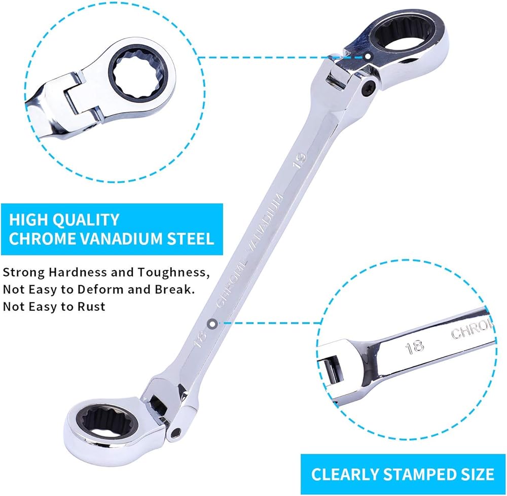 مواد عالية الجودة: مفاتيح السقاطة مصنوعة من فولاذ الكروم الفاناديوم عالي القوة. سطح مفتاح السقاطة يتميز بلمسة نهائية من الكروم المرآة مقاومة للتآكل من أجل المتانة، بالإضافة إلى ذلك، ليس من السهل الصدأ، حتى إذا كانت الشحوم أو الأوساخ العنيدة الأخرى ملتصقة، فهي يمكن تنظيفها بسرعة