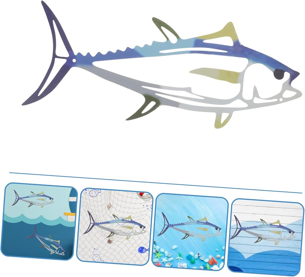- معدن ديكور جداري ساحلي: زخارف أسماك معلقة -- المنتج رائع في الصنع، شكل سمكة حيوي، بسيط وعملي لتزيين الاستخدام