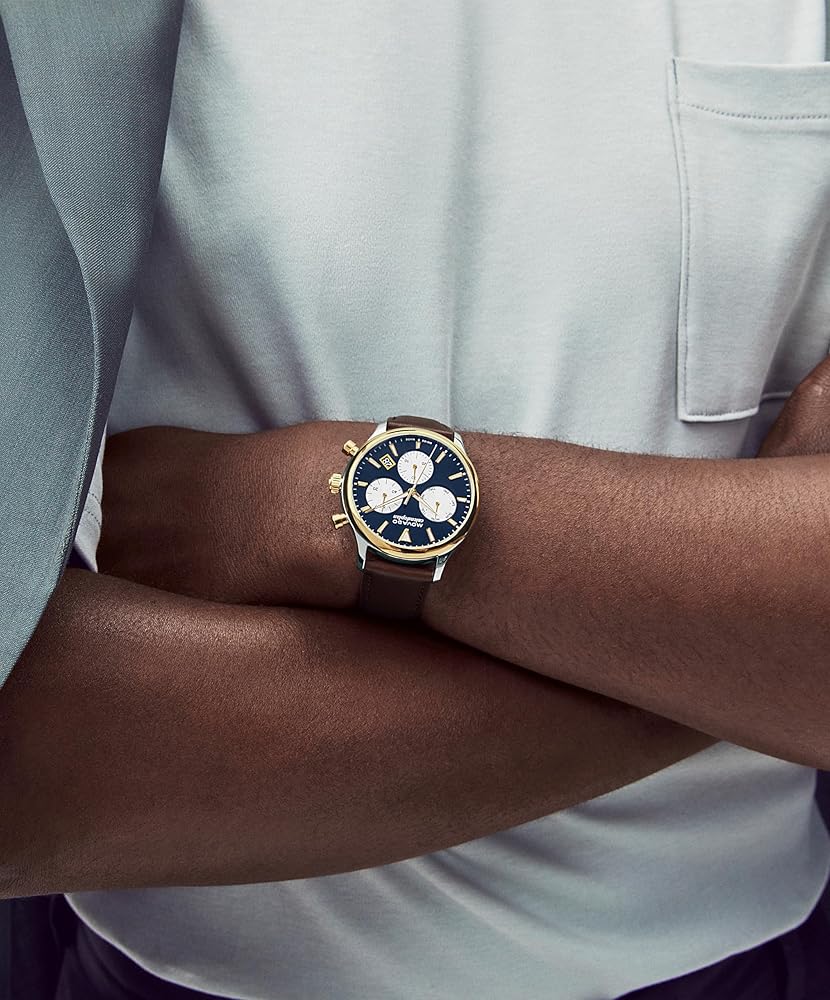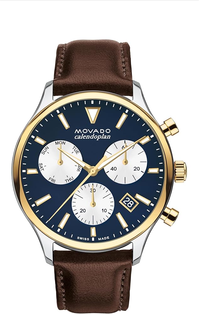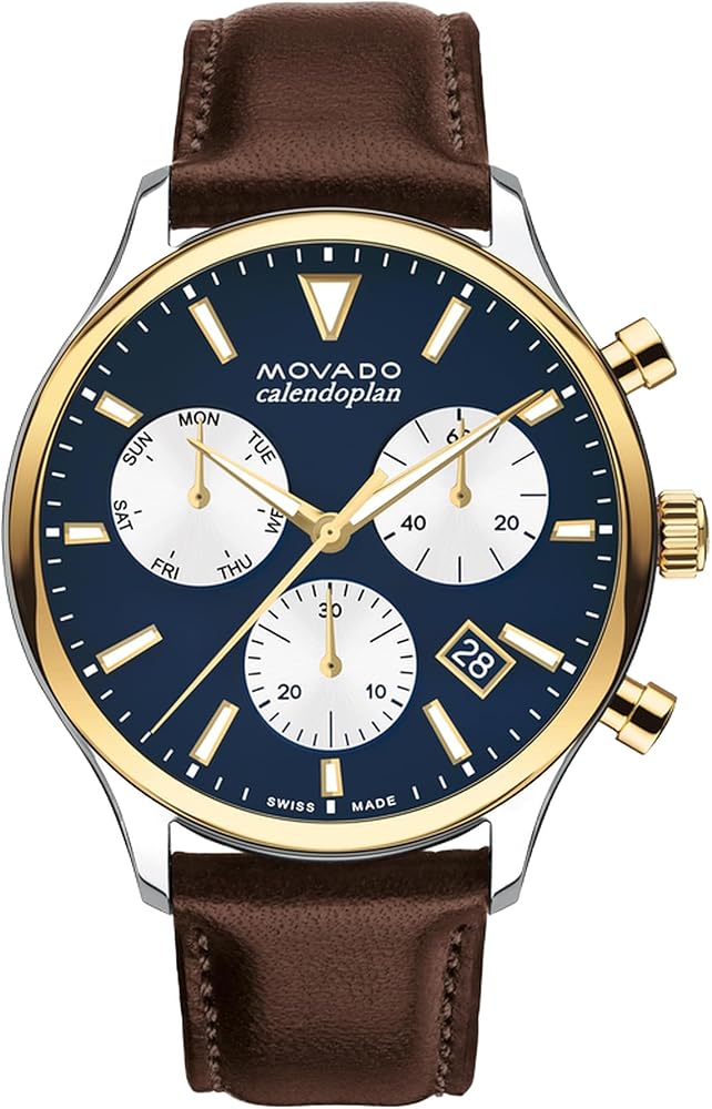 ساعة موفادو هيريتاج سيريز كاليندوبلان للرجال - حركة كرونوغراف كوارتز سويسرية، حزام من جلد العجل - مقاومة للماء حتى 3 ATM - ساعة رياضية فاخرة للرجال - 43 ملم