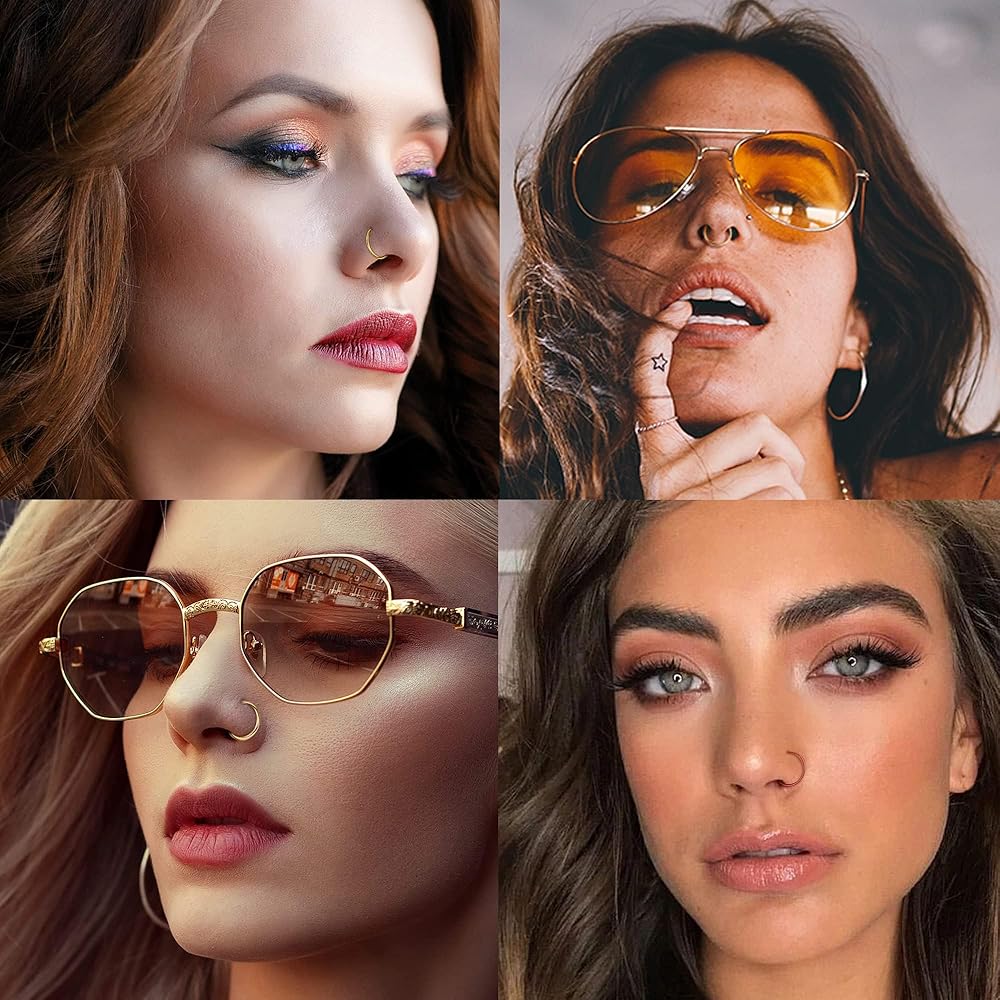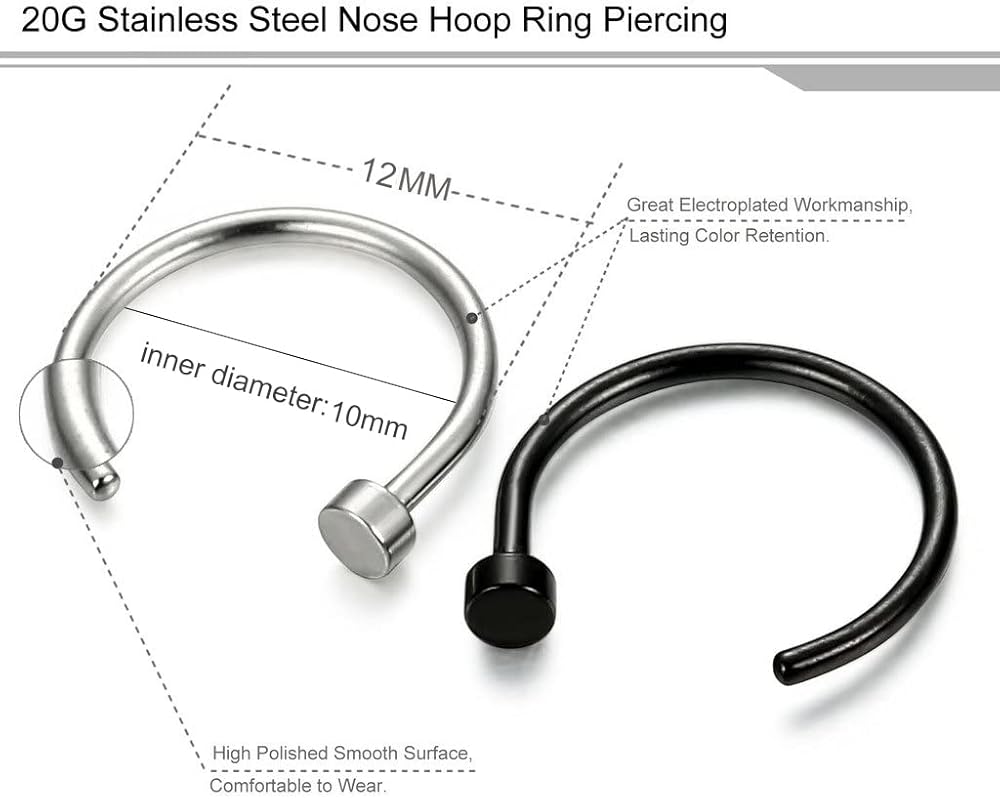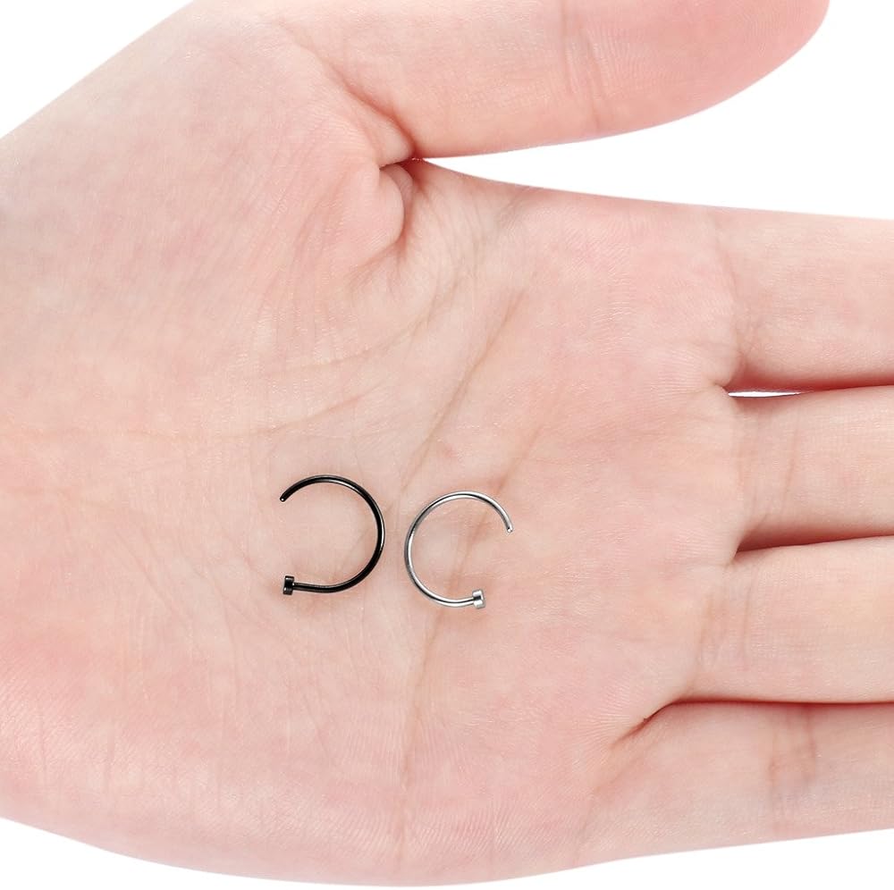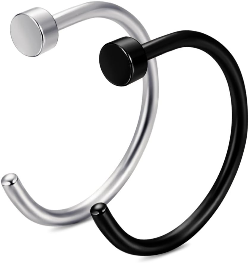 FIBO STEEL 18G-20G 2 قطعة مجوهرات للجسم من الفولاذ المقاوم للصدأ ثقب الأنف الدائري للنساء